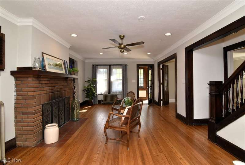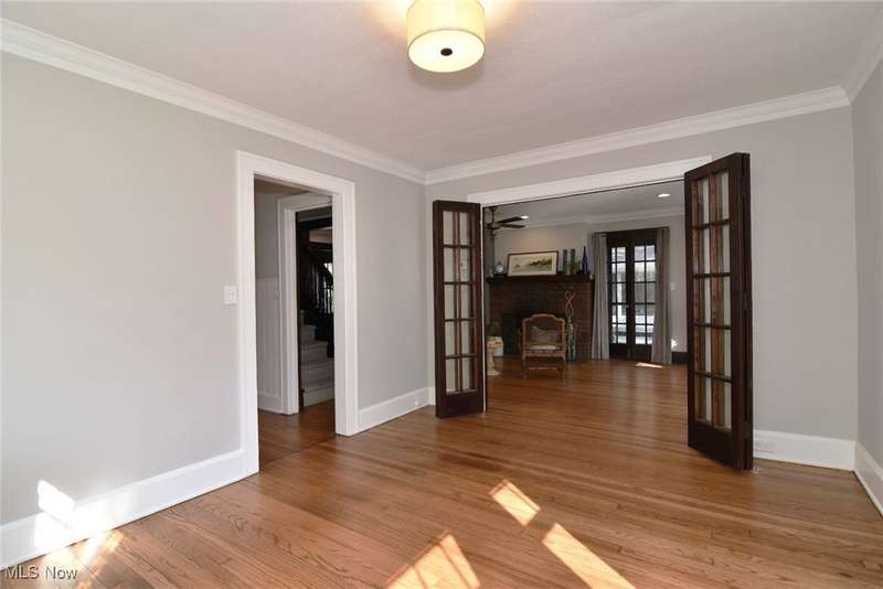 Welcome to 2480 Lee Road, 3-bed, 1.5-bath colonial boasting over 2,500 square feet of beautifully maintained living space. This home blends classic architectural details with thoughtful modern enhancements, offering both comfort & sophistication. Step into the inviting living room, where a cozy fireplace anchors the space & wooden French doors open to a covered side porch- perfect for morning coffee or evening relaxation. Just off the living room, a charming library with built-in bookshelves & matching French doors lead to a freshly refinished upper deck, ideal for quiet reading or entertaining under the stars. The formal dining room, privately tucked behind bi-folded French doors, sets the stage for memorable gatherings. The eat-in kitchen features a delightful breakfast nook & a pop-out glass greenhouse window?perfect for growing fresh herbs year-round. First floor is complete with an updated half bath near the convenient back door that leads you to a finished lower deck, surrounded by an oversized fenced-in backyard. The entire 1st floor showcases gleaming hardwood floors, refinished in 2025 to preserve their original warmth & character. Upstairs, you'll find 3 spacious bedrooms with newer carpet, including a primary suite with a tandem bonus room & access to two separate balconies?ideal for a home office. The full bath features both a soaking tub & a separate shower for added convenience. The expansive 3rd floor offers endless possibilities: use it as a luxurious primary suite or a family room. The unfinished basement includes a designated laundry area & abundant storage space. Tech-savvy buyers will appreciate the home's wired sound system with in-wall & ceiling speakers, a wired network with Wi-Fi access points on the main & 3rd floors, & 5 hardwired exterior security cameras for peace of mind. Numerous updates & improvements have been made throughout. See supplements for a full list. HSA home warranty included.