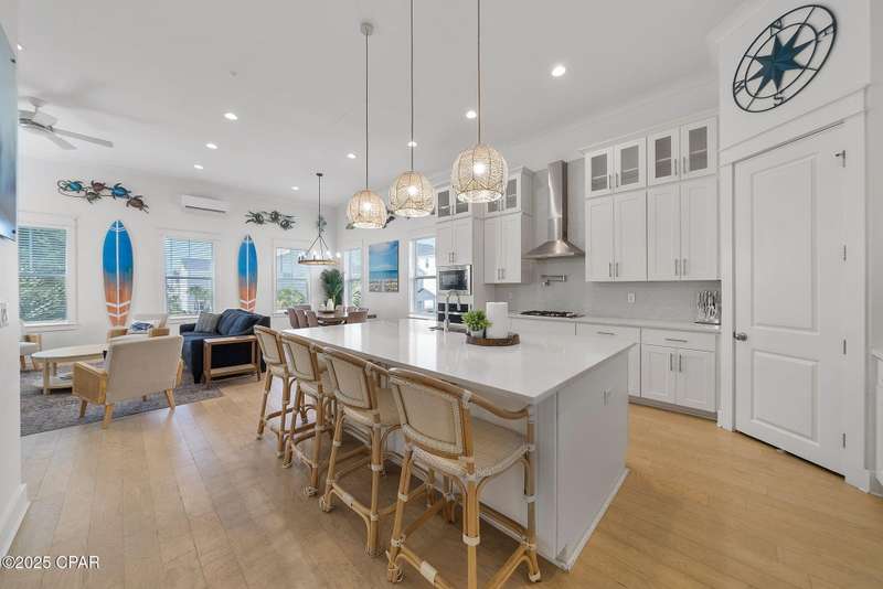 Beautiful beach home located within walking distance of the unparalleled shores of Inlet Beach, Florida. This home is exactly what a Florida coastal home should be! With 3 stories, 4 bedrooms and 3.5 baths, it offers great views, spacious living and a luxurious yet family-friendly feel. This home comes FULLY furnished so you can move in without a care or offer this home as an immediate short term rental! The home is located at the gateway to the scenic 30A Hwy and is next to 30Avenue shops and dining, 1 mile from Rosemary Beach and 1 mile to Camp Helen State Park. There are no worries with beach access here as the nearest public beach is within walking and biking distance. The new underground pedestrian tunnel provides safe passage under Hwy 98 and opens up to 30A. The current owner says the home easily accommodates up to 13 people. Current rental figures are available. All measurements are approximate so please verify.