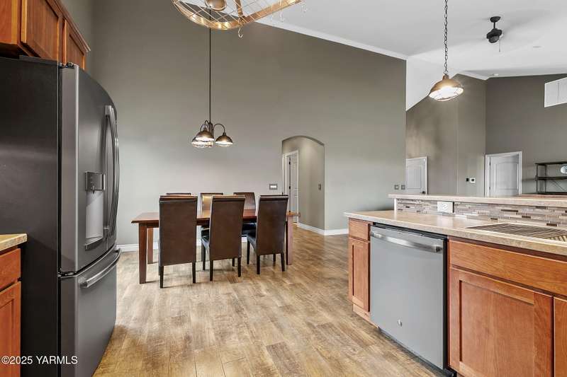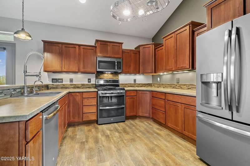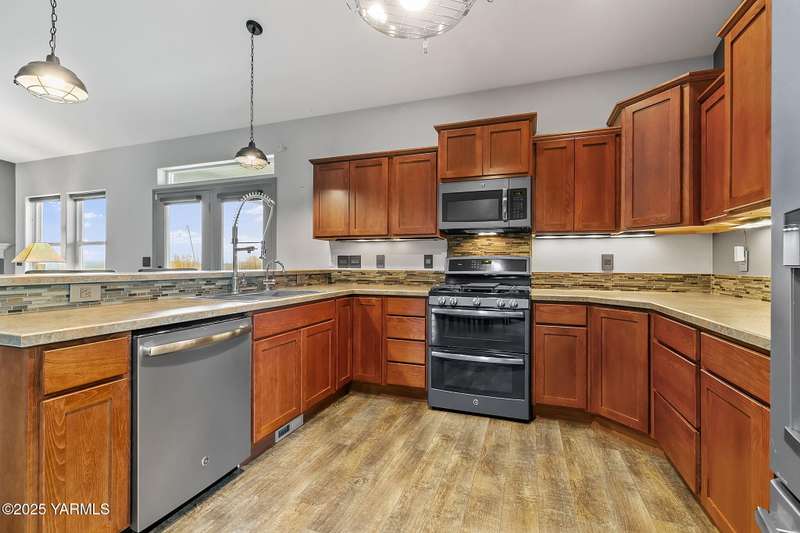 As you turn onto 73rd Ave., notice that the homes have all been individually built by the original owners. This is a street of wonderful homes. As you approach the home, notice the very desirable 3 Car Garage. entering the home, you are greeted by a wide, welcoming foyer, perfect for an entry table or the like. Off to your left is the convenient entrance to that 3 Car Garage. In front of you is the open, spacious Living Room with its open concept placement to Kitchen and Dining, and with easy access to the large, covered, and lighted Patio. When you are on the Patio, notice the Views that you have, and good sized back lawn area. The Kitchen is sure to please with the large Farm Sink, ample cabinetry with soft close doors and drawers. The Double Oven Stove with 5 Burner Gas Cook Top will attract those of you are Chefs. The built in Microwave with matching Fridge, Dishwasher and 4 Stool Bar round out a great space for meal preparation and entertaining. The Primary Bedroom with Walk-In Closet are both very spacious. The Primary Ensuite features Double Sinks, Large, Tiled Shower, and so much cabinetry. Down from the Kitchen are Bedroom # 2, the Laundry Room with Linen Closet, and 2 Nicely Sized Bedrooms. Everything about this home provides welcoming spaces inside and out, and is so convenient in so many ways.
