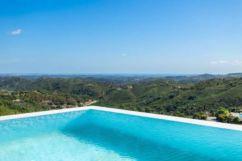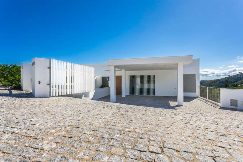 This fantastic three-bedroom luxury villa, all en suite, is located very close to the Monchique thermal baths, with stunning views of the mountains and the coast on the horizon. With a modern and unique architecture, spread over two floors, all the rooms are designed to take advantage of the wonderful view and the existing outdoor spaces have, like the interior, maximum comfort and harmony. On the upper floor, we find the three spacious suites, with access to the spectacular balcony that runs the width of the house. Going downstairs, or using the elevator, we find an open-plan kitchen, living room and dining room with fantastic areas, with sophisticated details and finishes in every corner. Outside, in addition to the generous terrace, there is also a surprising infinity pool and a spectacular garden that values privacy and tranquility and fits in perfectly with the landscape and beauty outside. Outside the villa, there is private parking for up to four cars. This villa is set in an area of true natural beauty, unique in the Algarve region, surrounded by greenery, just 15 minutes from the region's best beaches, and around 45 minutes from Faro International Airport. CHARACTERISTICS: Plot Area: 2 000 m2 | 21 528 sq ft Area: 300 m2 | 3 229 sq ft Deployment Area: 215 m2 | 2 314 sq ft Bedrooms: 3 Bathrooms: 4 Energy efficiency: A+ FEATURES: 3 bedrooms Fully equipped kitchen Balcony / Terrace Elevator Garden Infinity pool Private parking