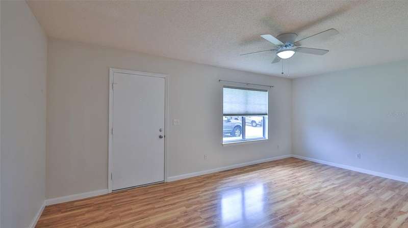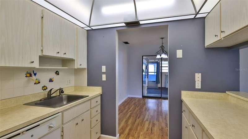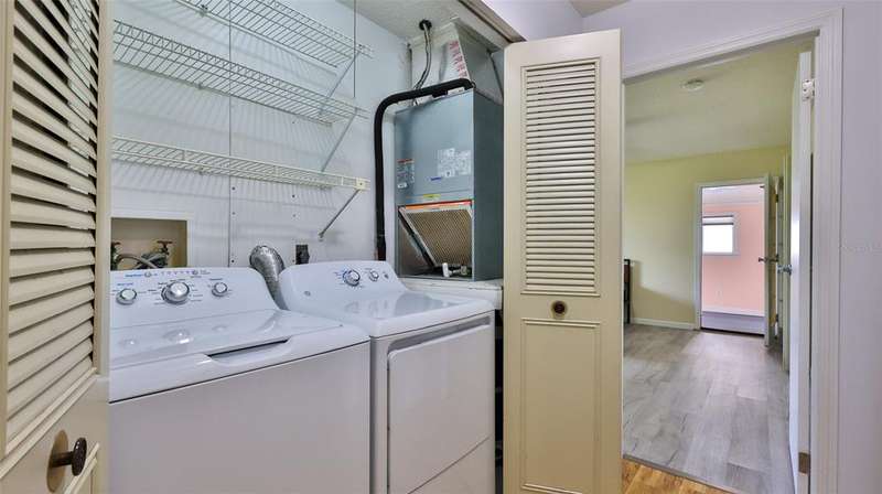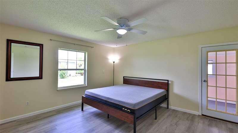 Nestled between 2 golf courses, this is the perfect residence or 2nd home for any golfer looking for an affordable home in a centrally located neighborhood that is the area's best value! Freshly painted interior and exterior home offers peace of mind with 2023 A/C system and a BRAND NEW ROOF, to be put on prior to closing by seller, eliminating insurance concerns. Commercial rain gutters installed 2021. Oversize 14 x 19 one-car garage with lots of natural light and storage closet. Screen room can easily be converted to house your golf cart, if desired. Ample driveway provides parking for 2 cars side by side, as well as golf cart parking in front of screen room. Primary bedroom has adjacent home office/den that is under central A/C, providing a private space for whatever use you like. Newer W/D in laundry closet within the home.Newer vinyl floors in bedrooms, and laminate floors in rest of living space. Double pane windows and updated bathrooms with new cabinets and comfort-height toilets. Affordable HOA annual dues of $275 provide mandatory termite bond and irrigation system with water to sprinklers. Heated Community Pool is available by optional membership and purchase of pool certificate. Close to Historic Canal Street shopping and dining, and eclectic Flagler Avenue and the beach are but a short drive or even a bike ride.