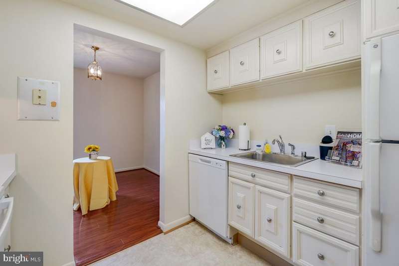Buyers Delight. Price reduced by $10,000. Come and take a look at this lovely move-in ready unit located on the main entrance level. A large storage cage on the lower level is included. Coop fee covers all of the maintenance including appliances and HVAC. Laundry located next to unit. Enjoy the lovely bright white kitchen with all white appliances. Updated laminate floors throughout with no carpet. This unit is in a great location with easy access to the main gate, and one block from Club House 1 with 2 restaurants, (enjoy a luncheon on the lanai next to the outdoor pool) the art center, the newspaper office, the ballroom, the library and several offices. Leisure World also offers a community bus service, an 18-hole golf course, walking trails, and a second club house. There are two swimming pools, (indoor and outdoor) numerous clubs and many activities to choose from. Come and see for yourself. Currently the parking space is # 11