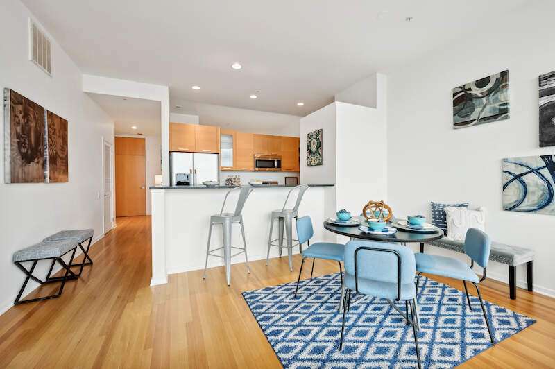 Endless City & Lake views from Sunny High-Floor Unit at The Montgomery! Large 2BR/2BA with Loads of Closets and Brazilian Oak Hardwood Floors. Light Filtering Blinds in Living Room and Blackout Blinds in Primary Bedroom on Floor-to-Ceiling Windows. Stainless Appliances, Updated Cabinets and Leathered Granite Counters with Oversize Breakfast Bar & a Large Pantry. Fully-Enclosed Primary Bedroom Suite w/Soaker Tub, Double Bowl Vanity, & 2 Closets. EVERYTHING BUT ELECTRIC INCLUDED IN ASSM: Heat/AC, Internet, Cable, Water, Cooking Gas & Storage! 24/7 DOORSTAFF, UPDATED EXERCISE ROOM, HUGE ROOFDECK, ONSITE MGMT, DRY CLEANER, AND DOG RUN! DON'T MISS THE AMAZING TREE-LINED PATIO WITH OUTDOOR SEATING AND GRILLS.