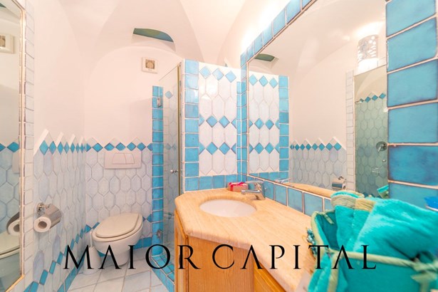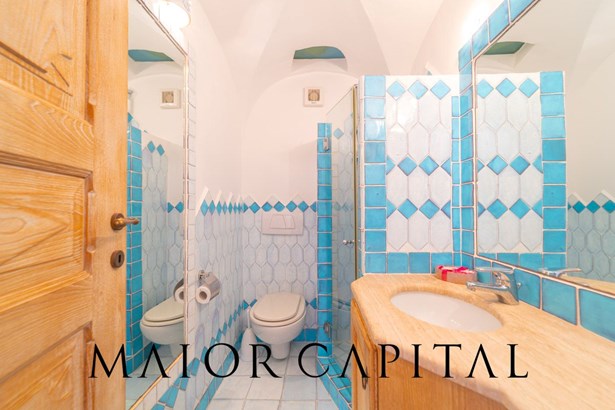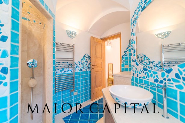 The sleeping area, accessible via a few steps, offers an intimate and harmonious environment. The master bedroom, with a sliding door and sea view, offers spectacular views every day, while the en suite bathroom is a corner of comfort and well-being. Next to it, a second double bedroom with private bathroom completes the sleeping area. This bedroom offers direct access to the rear courtyard, providing greater privacy and convenience. The courtyard also has another entrance to the property, allowing access from the parallel side without passing through the living area.