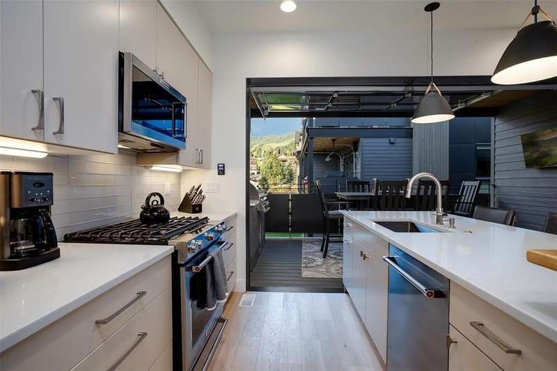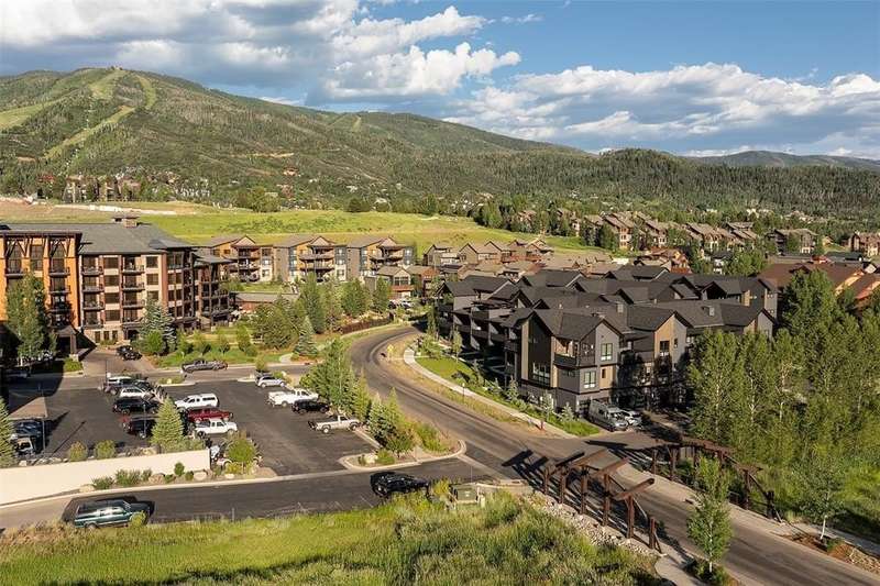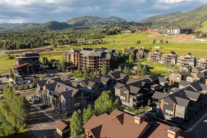 Super price reduction and ready for ski season! Spectacular 4BR/4BA townhome, mountain views & private gondola! No detail has been overlooked in this stunning, professionally furnished Elevate Townhome in exclusive Wildhorse Meadows. Offering 1,966SF of thoughtfully designed living space, this mountain-modern retreat blends luxury and comfort with views of Mt. Werner or Emerald Mountain from every room, deck, or patio. The great room is anchored by a striking fireplace wrapped in black shiplap wood and rustic mantle. The gourmet kitchen features stainless appliances, upgraded finishes, and built-in dining area. For outdoor entertaining, a fully retractable glass wall extends the great room to a spacious deck for grilling and dining with ski area views. There’s also a pantry and laundry closets. 3-levels offer privacy and flexibility and comfortably sleeping up to 10. The primary suite is a sanctuary, with ski slope views, opulent bath, custom closet, private deck with hot tub and firepit lounge. The junior ensuite is also on the top level with workspace and Emerald Mountain views. Bedroom 3, on the main level, features queen-over-queen bunks, ideal for guests of all ages, while one level below is Bedroom 4 with full ensuite. Also at this entry level is a heated 2-car garage. When it’s time to hit the slopes, simply walk out the front door, grab your equipment out of the handy ski locker and enjoy an easy stroll to the Wildhorse Gondola. Additional Wildhorse amenities include a year-round pool, grotto hot tubs, fitness center, game room, firepit & seasonal shuttle downtown. Steamboat Tennis & Pickleball Center is next door. Short-term rentals are permitted, offering strong income potential. Designed by one of Steamboat’s most acclaimed interior designers, the elevated finishes and attention to detail are immediately apparent, making this property a standout for the discerning buyer - whether you're seeking a primary home, vacation escape, or investment opportunity.