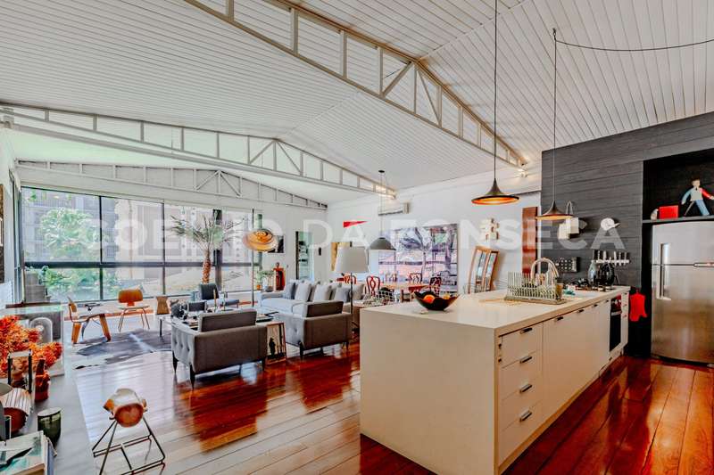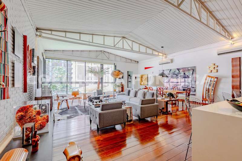 O último pavimento é dedicado à parte residencial, com um incrível loft onde o living foi integrado à cozinha. Esse ambiente conta ainda com um lavabo e um espaço de lavanderia reservado. A suíte principal possui um dormitório amplo, dois closets e um banheiro com duas cubas, oferecendo máximo conforto.