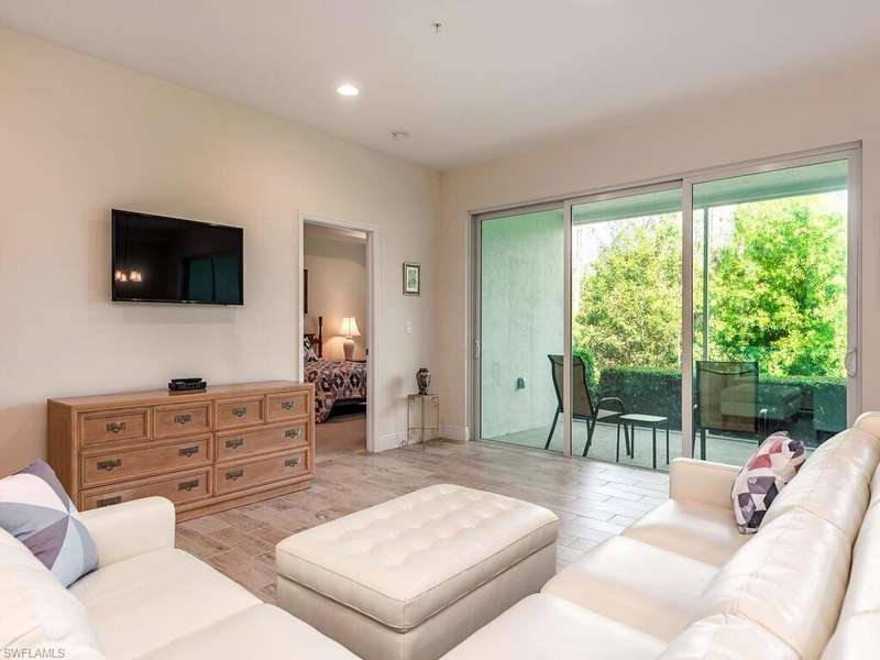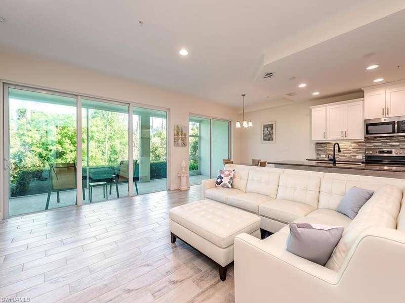 Welcome to this pristine first-floor condo nestled within a gated community, offering a move-in ready haven for comfortable and convenient living. Boasting 2 bedrooms, 2 baths, and an attached single-car garage, this home presents an ideal blend of modern luxury and tranquility. As you step inside, you'll be greeted by an inviting interior adorned with upscale finishes and thoughtful details. The spacious quartz kitchen island and counters stand as a focal point, perfect for both culinary endeavors and casual gatherings. Wood-look tile flooring flows seamlessly throughout the open floor plan, leading to a spacious screened lanai where you can savor the peaceful ambiance of the wooded backyard. Just a short walk away, residents can access a community pool, providing a refreshing retreat on warm days and fostering a sense of community among neighbors. Meanwhile, the gated community ensures privacy and security, allowing residents to relax and enjoy their surroundings with peace of mind.