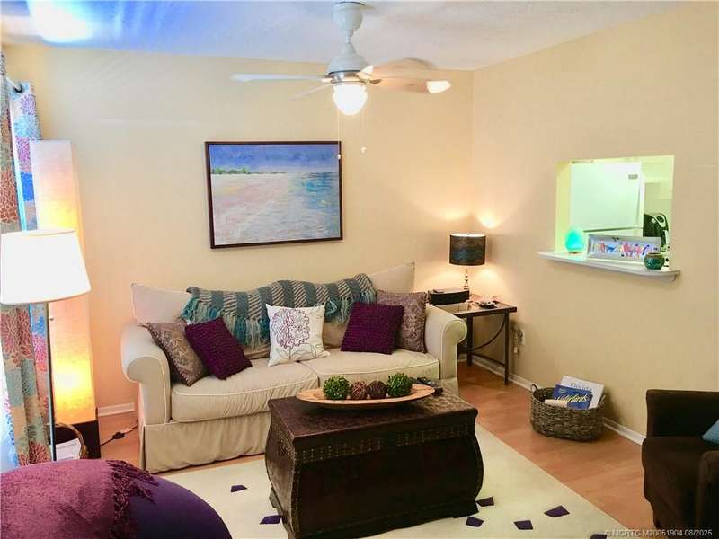 Nicely decorated condo in Village 6 of Cedar Pointe Condominiums. Wood look laminate flooring throughout. Primary bathroom has tub/shower combination. Bathroom fixtures are newer. Property is being sold fully furnished. Move in ready, just bring your personal belongings. Unit is fully furnished with dishes, glasses, linens and towels. Located close to local beaches, public golf course nearby, downtown Stuart less than 10 minutes away. Private screened lanai overlooking Florida vegetation for privacy. Low HOA fees with a nice clubhouse and pool area. Ready to move right in and start enjoying the Florida life.