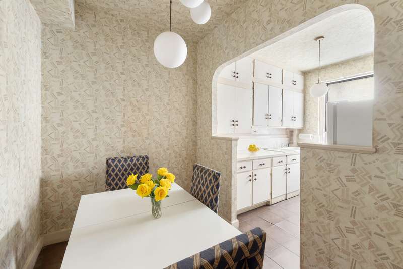 A generous entry foyer leads to the grandly proportioned living room of uncommon scale, while the windowed eat-in kitchen is bright, extremely spacious, and ready for your reimagination. The oversized main bedroom enjoys excellent southern light and two large closets.