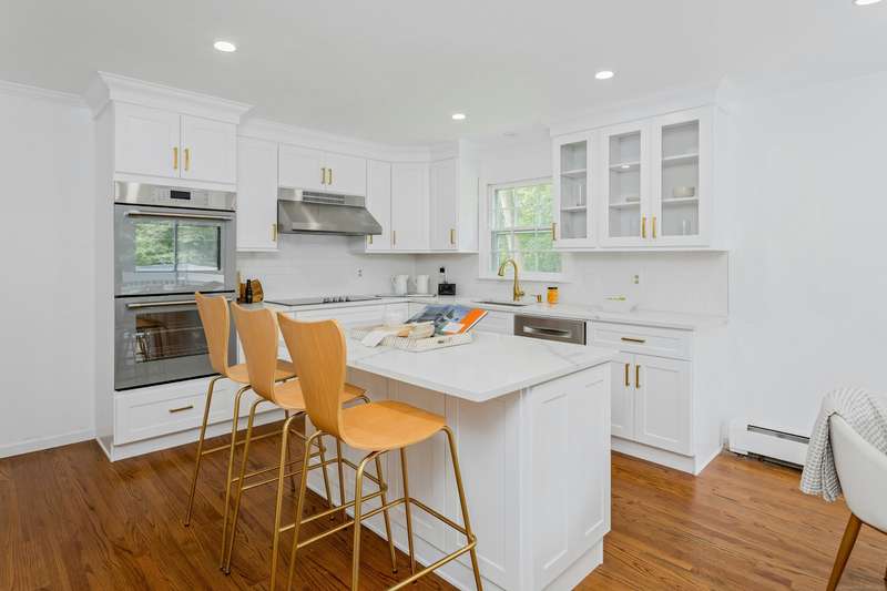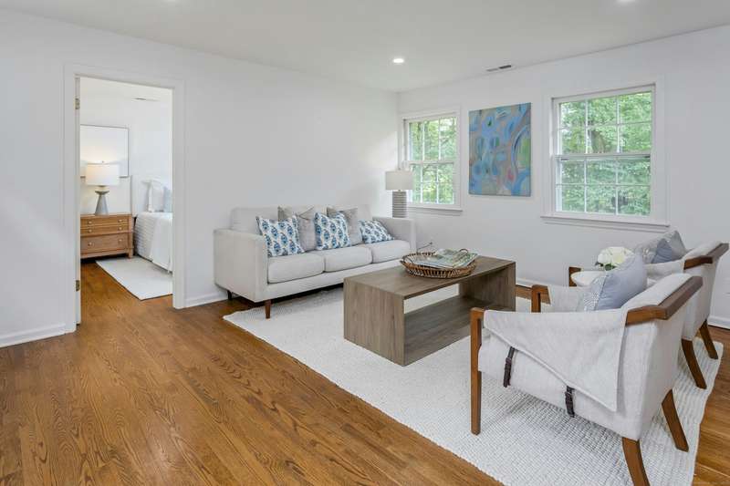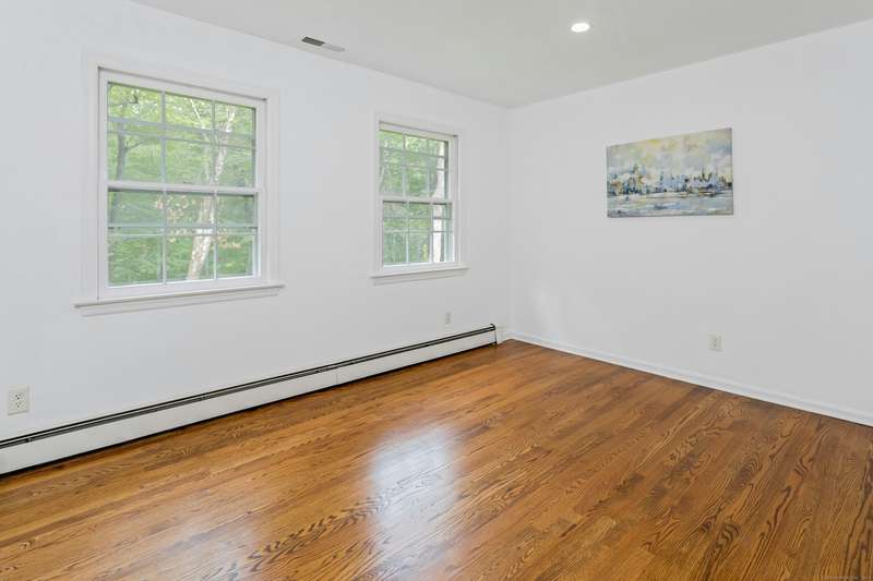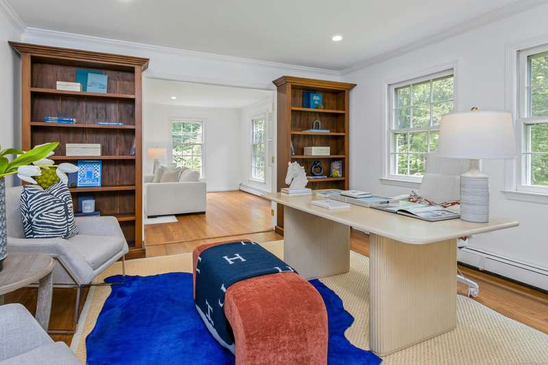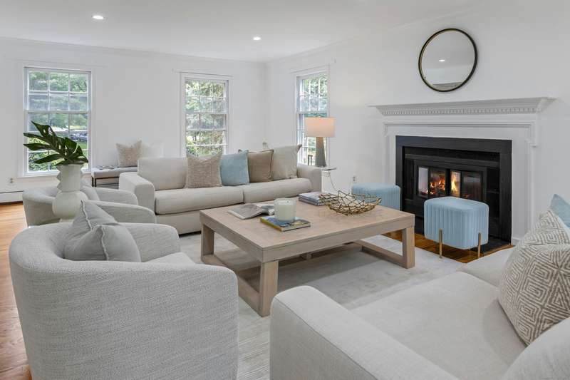 Just renovated to perfection, this 5BR, 3.5BA classic Connecticut colonial with extra 1900 square feet of finished lower level gives you over 5300 square feet of living area and is situated on a very private much sought-after cul de sac in New Canaan's loveliest areas of 4+ acres estates and properties. This home has it all. Beautiful quartz countertops in your new light filled family kitchen with custom cabinets and high end appliances, big island and breakfast room which leads through floor to ceiling glass sliders to your deck and connects to your huge family room with fireplace for ultimate gatherings. Upon entering the foyer, you find a lovely formal dining room, comfortable living room and wonderfully designed office with wood floors and bright windows looking onto your magic estate like private property. Newly renovated bathrooms grace 4 large bedrooms and laundry, with primary suite a sitting room (or nursery), walk-in closet, and a spa-like bath. The connecting and private entry in-law suite has a separate staircase with its own exterior entrance leading to a fifth bedroom suite with sitting room. The huge 1900 square feet of newly finished lower level with glass doors walking out to private patio and has a huge playroom/media room and additional lower-level family room. The 2-car attached garage and possible wine room gives entertaining a new meaning. All just minutes to town, train, and schools!