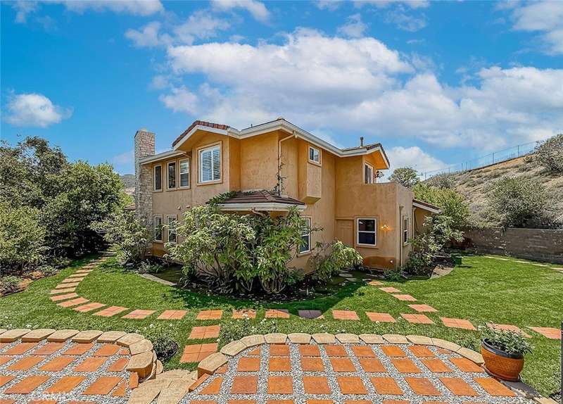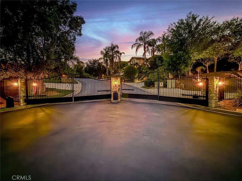 Welcome to the exclusive gated enclave of Lynn Oaks Estates. This stunning residence is perched atop a long private driveway and offers breathtaking surroundings on approximately 1.5 acres. This one-of-a-kind property includes a working beehive for fresh honey, a charming chicken coop, and potential building opportunity, with the possibility of a separate access driveway via a neighboring easement with breathtaking 360-degree view—enjoy sunrise to sunset views of the surrounding mountains, rolling hills, and city lights. Behind elegant double entry doors adorned with leaded glass insets, you're greeted by a showstopping circular wrought-iron staircase, setting the tone for the sophistication throughout. The formal living room boasts dramatic cathedral ceilings, a custom fireplace, and ornate iron-accented windows that flood the space with natural light. An arched passageway leads to the formal dining room, perfect for hosting elegant dinners. Adjacent, the butler’s pantry flows seamlessly into the heart of the home—an expansive gourmet kitchen equipped with stainless steel appliances, a large walk-in pantry, and a generous center island, all open to a spacious dining area and inviting family room complete with fireplace, wet bar, and plantation shutters. Downstairs also includes a versatile office/gym, a guest bedroom, and two baths, offering comfort and functionality for family and guests. Upstairs, the massive primary suite serves as a private sanctuary featuring a balcony with a view of the backyard, an ensuite bath with dual vanities, a soaking tub overlooking the backyard, a separate shower, and a private water closet. Additional bedrooms include one with a private ensuite and two sharing a Jack-and-Jill bath, all designed with comfort and style in mind. Step outside to a newly sodded backyard, perfect for entertaining with an elevated platform ideal for al fresco dining. Venture up the tiered slope via a scenic staircase that leads to a breathtaking 360-degree vista—enjoy sunrise to sunset views of the surrounding mountains, rolling hills, and sparkling city lights. Don’t miss your chance to own a truly unique property offering land, and limitless lifestyle potential in one of the area’s most desirable gated communities.