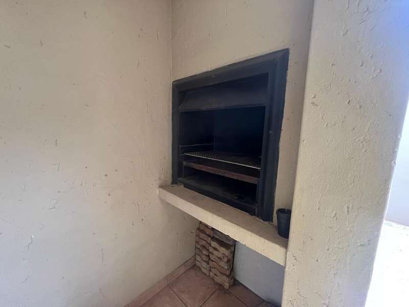 The open plan living and dining room area create an inviting ambiance, perfect for hosting guests or enjoying intimate family moments. A sliding door seamlessly connects the living space to a compact patio, complete with a built-in braai, offering a delightful outdoor experience for relaxing and entertaining. Embrace the tranquil surroundings and bask in the charm of the small private garden, perfect for unwinding after a long day.