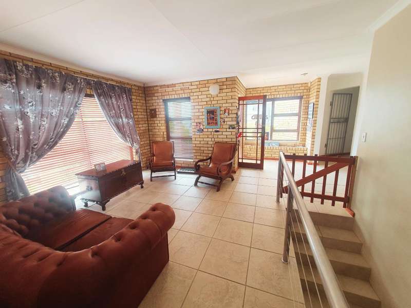 Don?ÇÖt miss this fantastic opportunity in Wavecrest, Jeffreys Bay! This spacious four-bedroom, two-bathroom property offers an additional two-bedroom flatlet downstairs, making it ideal for accommodating a large family or generating additional rental income. Nestled on a sought-after road in Wavecrest, this low-maintenance facebrick home offers a blend of comfort and functionality. With an open-plan spacious design, breathtaking scenic sea views, and large back garden, this property is perfect for both relaxing and entertaining. From the entrance hall, the home flows seamlessly and encompasses a formal and informal living area, dining room, and thoughtfully designed kitchen. The kitchen includes a gas hob, eye-level oven, and a separate scullery, making it a dream space for hosting gatherings. The built-in braai area, which flows from the main living room, has spectacular sea views whilst the second built-in braai area opens through sliding doors onto an outdoor patio overlooking the generously sized back garden. The garden is well-maintained with mature plants and three water tanks. All four spacious bedrooms are situated together along a passageway. There is a large family bathroom with a bath and shower and a separate toilet. The main bedroom features an en-suite bathroom (with a bath and shower), a private dressing area, and large sliding doors that lead directly to the back garden. All bedrooms are equipped with built-in cupboards and ceiling fans for added comfort. Downstairs, the two-bedroom flatlet offers a private living space with a bathroom (shower) and a living area, perfect for guests or tenants. Additionally, the original garages have been converted into a functional office space, adding versatility to this incredible property.