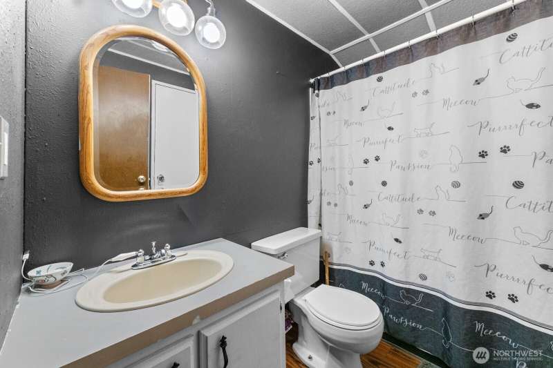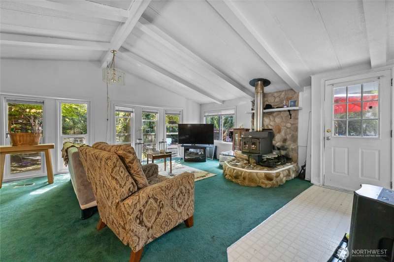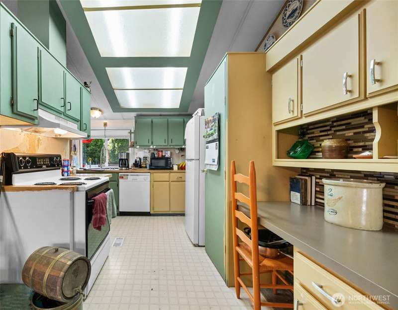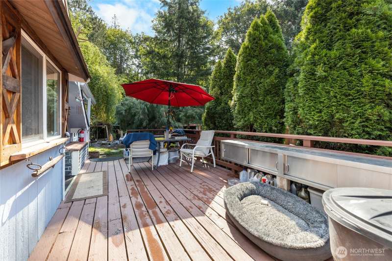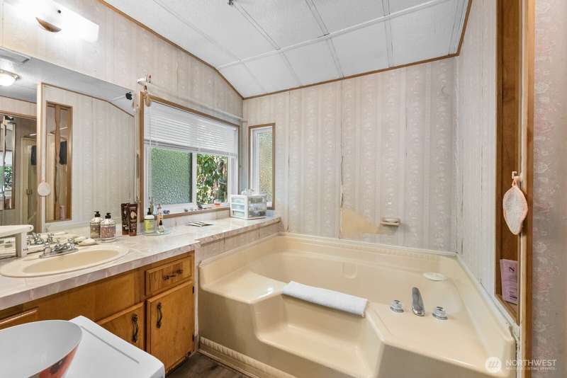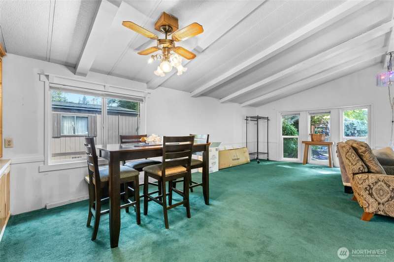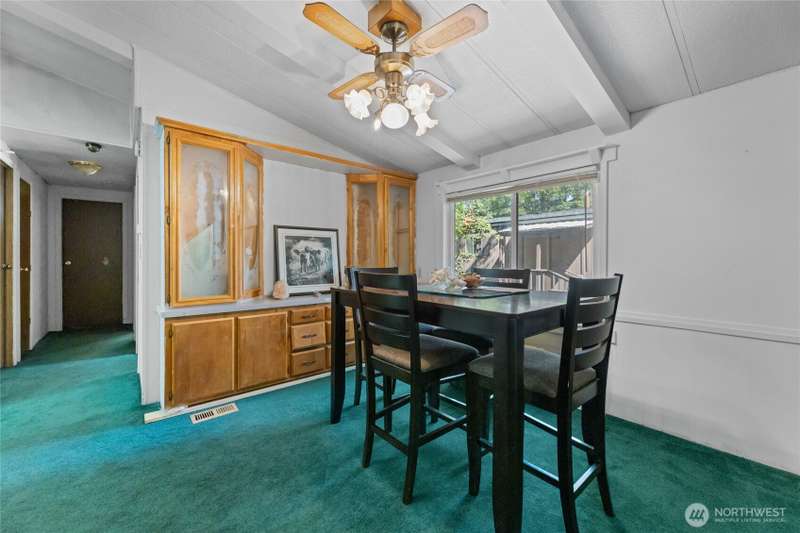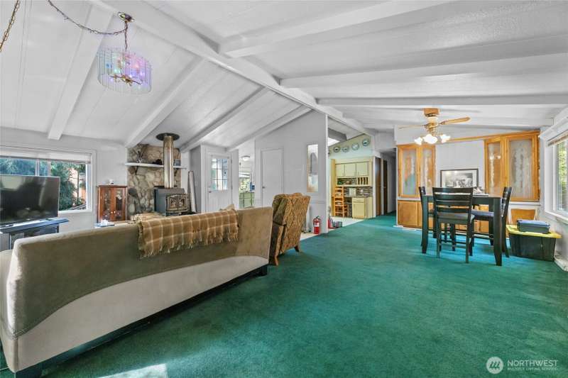 Opportunity Awaits! This 2-bedroom, 2-bath manufactured home offers 1,256 sq ft of comfortable living. Located in a community where you lease the land, the home features a practical layout with a spacious living room, dining area, and kitchen with eating space. The primary suite includes a private bath with a jetted tub. You'll also find a utility room, double-pane windows, a free-standing wood stove and ceiling fans throughout. New roof in 2019. Enjoy outdoor living with a covered patio/deck, landscaped yard, fire pit and ample parking. Space rent includes sewer and garbage.