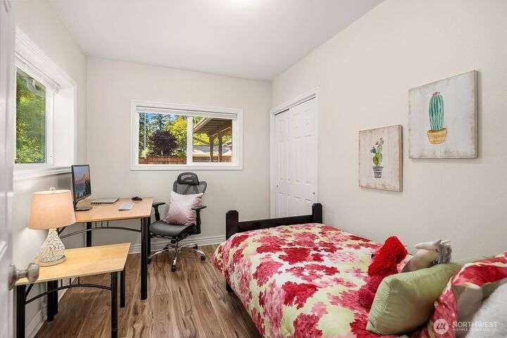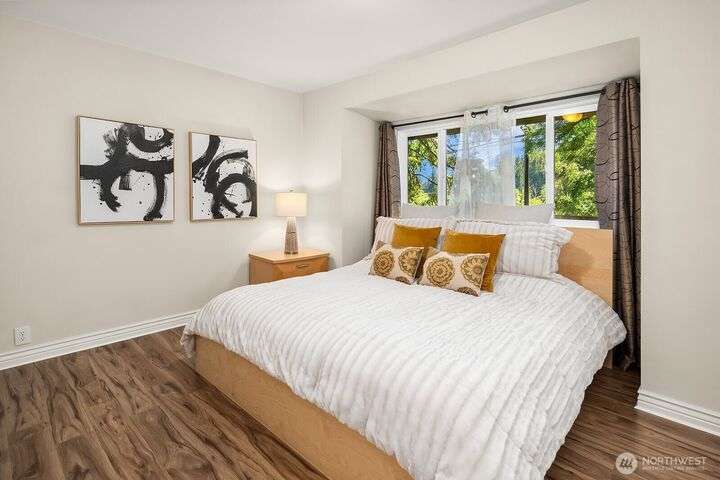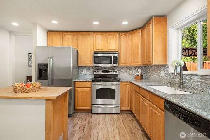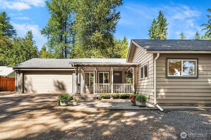 This updated 3 bed, 1.75 bath single-story home offers a stylish living space plus a 2-car garage and a spacious shop with extra storage. The outside has fresh exterior paint and a scenic yard with fruit trees. Step inside to discover brand-new laminate hardwood flooring throughout, an inviting living room with vaulted wood ceilings, and an upgraded kitchen featuring granite counters and stainless-steel appliances. The primary suite boasts a walk-in closet and a private bath, both baths offer heated floors. Walk down the street to Cottage Lake Park for its beach, sport courts, pool and play area. Located perfectly to enjoy the shopping and restaurants Woodinville has to offer. In the sought-after Northshore School District. Move-in ready!