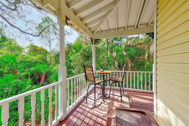 This exceptional Tarpon Springs property offers nearly half an acre of lush, storybook-like beauty enveloping a character-rich Victorian-style home. With passion fruit vines, avocado (only 2 years old so will fruit in 5 more years), banana, star fruit, and moringa trees throughout the grounds—and a tranquil small pond anchoring the landscape—the setting feels like a private sanctuary. The additional .19-acre parcel greatly expands the sense of space, making it perfect for gardening, outdoor recreation, or the type of creative use the seller currently enjoys. A paver driveway and walkway lead to the wrap-around porch and into the heart of the home. Inside, real hardwood flooring spans most of the main level, while the family room features luxury vinyl plank and a cozy gas fireplace. The property includes a buried propane tank, which efficiently fuels the gas range, water heater, home heating, and fireplace—a highly desirable feature, offering comfort and cost efficiency. The kitchen provides abundant cabinetry, generous prep space, and a large walk-in pantry—ideal for everyday cooking or entertaining. Upstairs, the primary suite includes two large walk-in closets and an ensuite bath with a jetted tub and a separate shower with dual showerheads. Additional conveniences include an upstairs laundry chute, a spacious first-floor laundry room, and a 2-car garage with excellent overhead storage. A standout feature of this home is its proven durability: throughout the severe 2024 storms that caused widespread flooding and damage, this home stayed entirely dry and experienced no damage whatsoever, offering incredible peace of mind. With .48 acres of captivating grounds, abundant fruit trees, room to garden, and endless opportunities for outdoor living, this property delivers a one-of-a-kind lifestyle. And with Fred Howard Park, local beaches, the famous Tarpon Springs Sponge Docks, downtown restaurants, boutique shops, and coastal parks only minutes away, the location offers the perfect balance of nature, recreation, and convenience.
