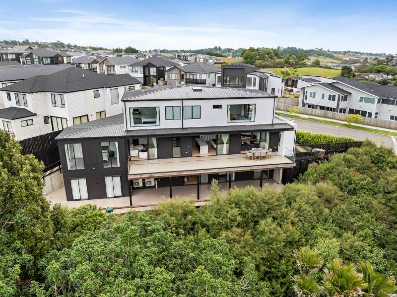 Set on an expansive 3,536sqm (more or less) site, The Nikau House is not just a home - it’s a bespoke retreat where thoughtful design, premium materials, and nature converge in perfect harmony. Designed by award-winning Shape Architects and constructed by leading specialists QBS IT, this residence was crafted to offer an elevated living experience that is both luxurious and grounded. With approx. 545sqm of internal living space and over 150sqm of elevated decking, this home unfolds across layers of light, space, and quiet sophistication. Every inch has been carefully considered – from the architectural floating staircase to the grand pivot entry door, from the warm, genuine Hurfords Oak flooring to the opulent Super White granite benchtops rarely seen in residential builds. • Private home theatre with a 160” screen, Dolby Vision + Atmos, and a built-in bar • 8 bedrooms, living room, family room, dining room, theatre room + dedicated games room - ideal for large or multi-generational families • Two ground-floor bedrooms with separate access - perfect for extended family, guests, or rental income • Three-phase power with full EV charging station • Elevator-ready design for future-proofed convenience • North-facing orientation with expansive windows showcasing native bush and skyline views, including Auckland’s iconic Sky Tower And yet, the true magic lies in its setting. Though located within a sought-after community with easy access to schools, shops, and transport, the property backs directly onto a lush native reserve. The result is a rare sense of calm, privacy, and connection to nature - like a modern treehouse, hidden in plain sight. This is a home that must be experienced to be truly understood. The ambiance, the flow, the sense of scale - no brochure or photo can fully capture it. The Nikau House is a rare statement of architectural vision and peaceful luxury. Contact us now to arrange your private viewing.