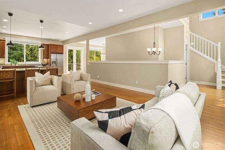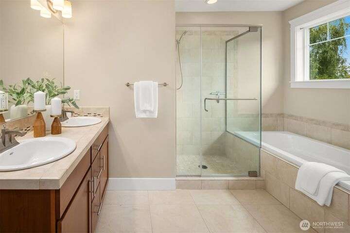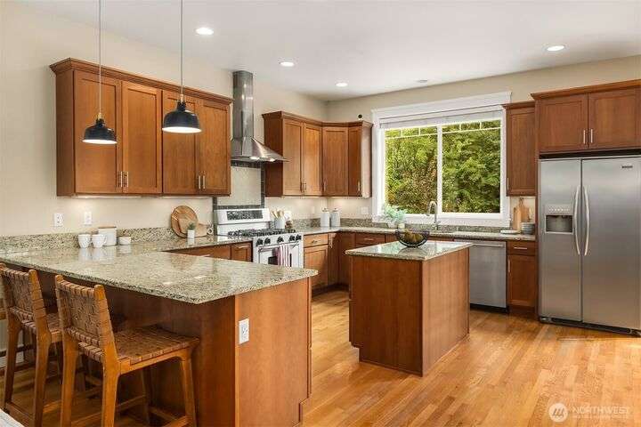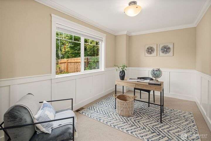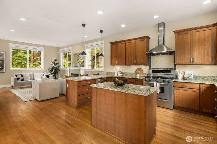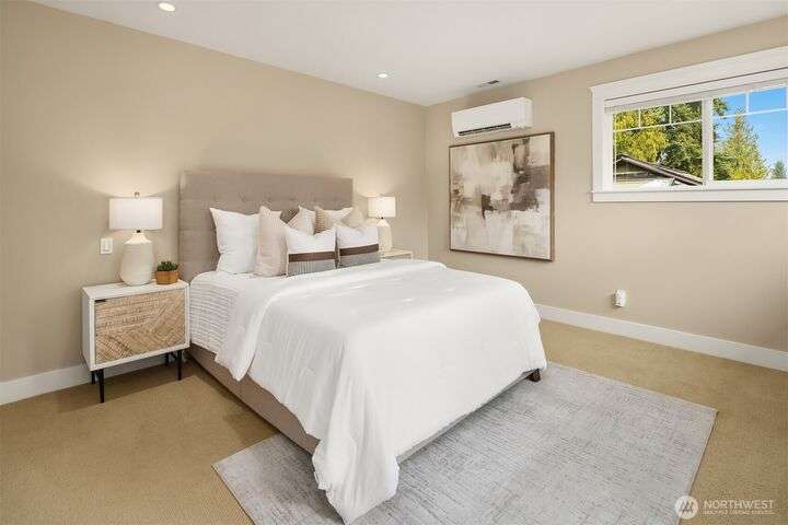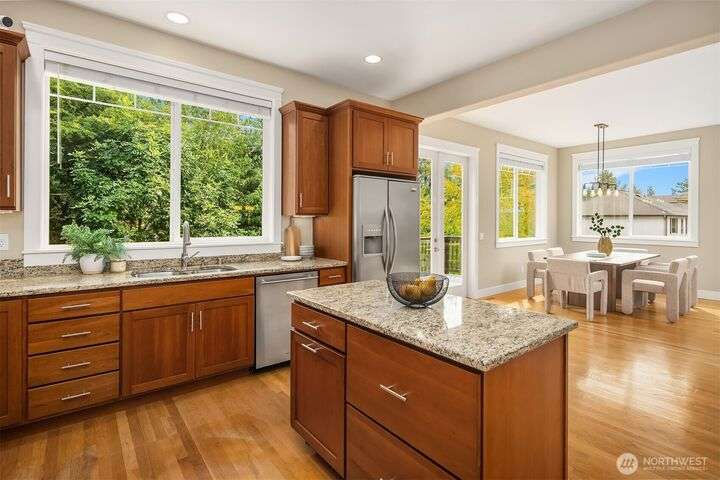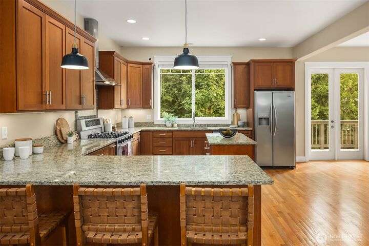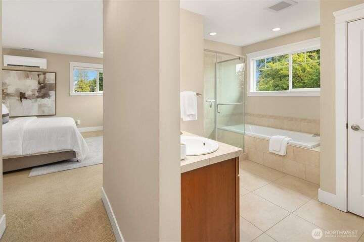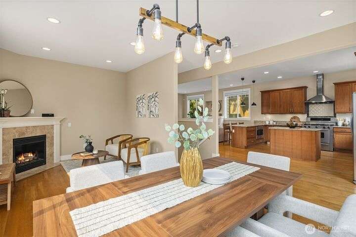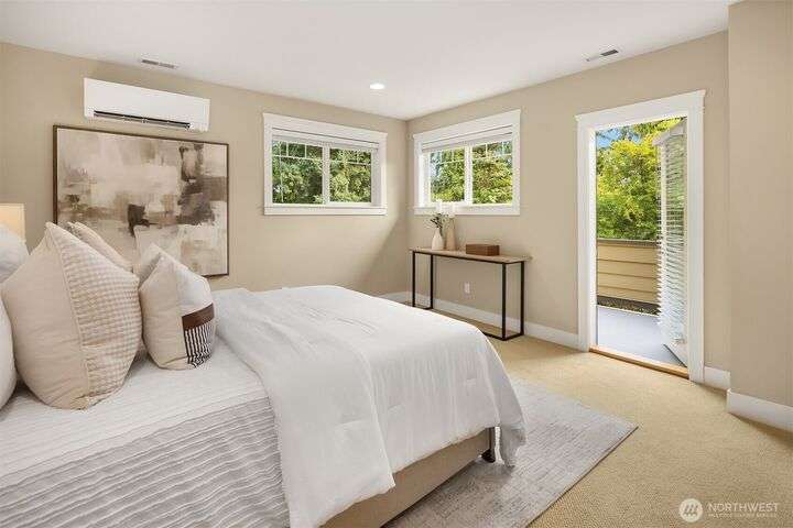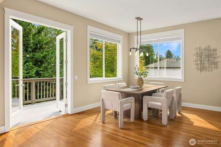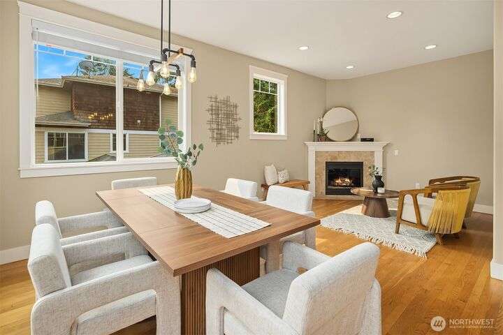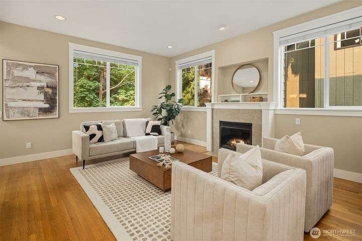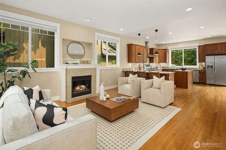 This impressive & private three-story residence features an open layout, high ceilings & expansive windows that provide abundant natural light. The northwest contemporary design offers a spacious living room, gourmet kitchen, dining area, and comfortable den, all with hardwood flooring. The upper level includes a well-appointed primary suite, secondary ensuite bedroom. Lower level provides additional bedrooms, a TV den w/ direct backyard access, a full bath & 2 car garage|EV ready. The backyard is sunny, private and meticulously maintained just ready for outdoor entertaining! The property is conveniently located near Matthews Beach, UW & U Village shops on a quiet, private street. Less than .5 miles to Burke-Gilman trail. Welcome Home!