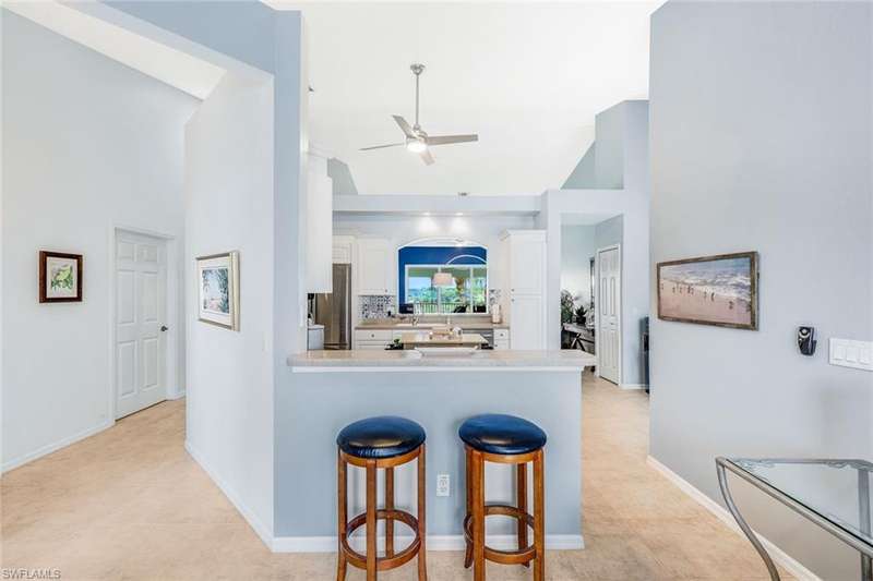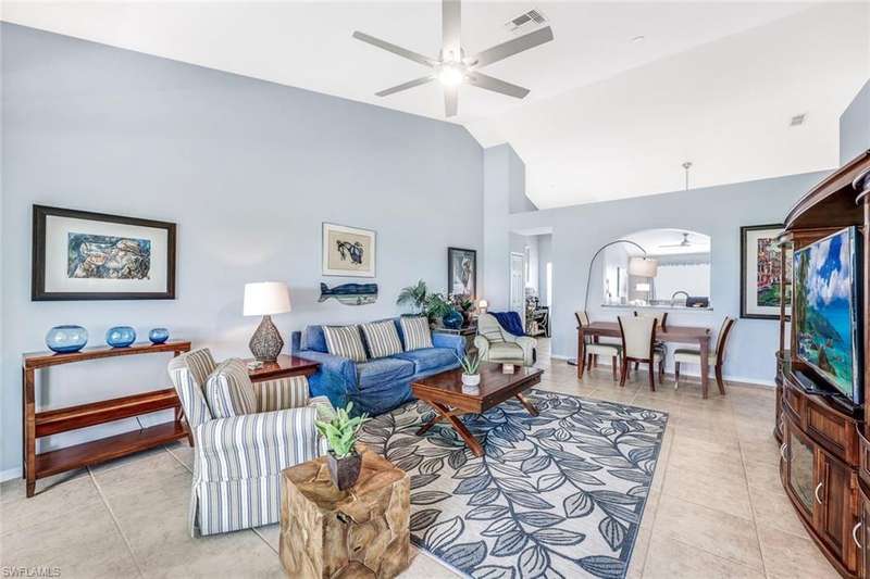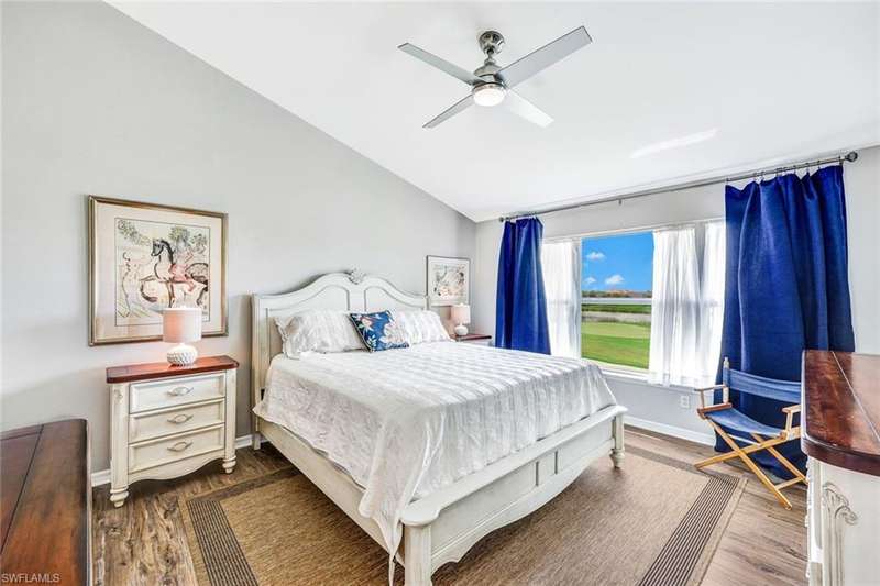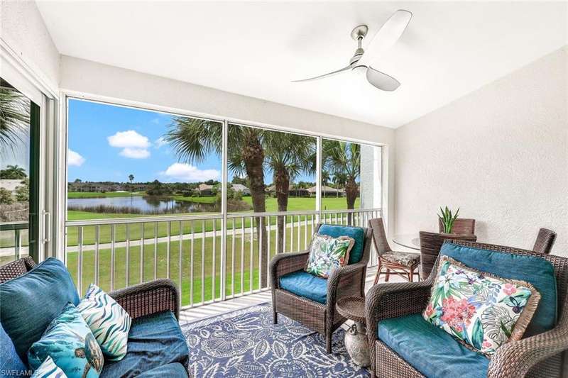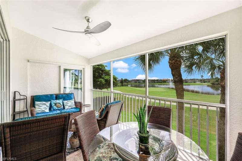 Your new Naples address is waiting in this annual rental in The Wedgewood II neighborhood at the Strand! This spacious 2 Bedroom+Den/2 Bath second floor condo has high ceilings, a golf course and lake view, and a roomy kitchen with plenty of counter space and cabinets. Decorated in a coastal style with soothing blues and greens, this light and bright home has a true beachy feel. A one car garage offers security for your vehicle and a comfortable screened lanai gives you privacy while enjoying the long golf course views. Wedgewood residents have access to the community pool/spa, clubhouse, fitness center, tennis, pickleball, and restaurant options. The Strand is ideally located just minutes from the beach, shopping, and the Naples night-life.