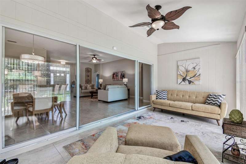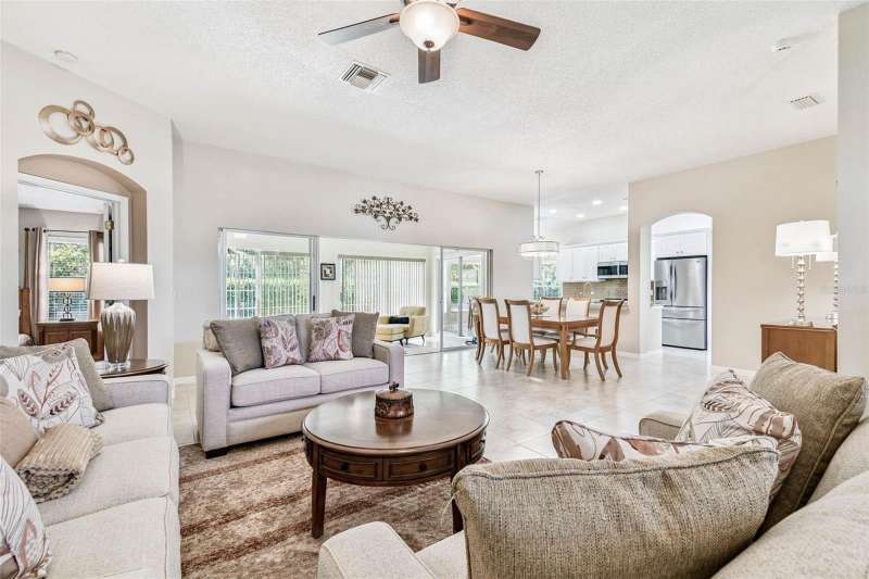 Welcome to Heritage Springs- Active 55+ Resort Living in the heart of Trinity! This beautifully maintained 2-bedroom, 2 bathroom end- villa in Egret Landing is move-in ready and loaded with updates. Enjoy a light-filled enclosed Florida room with AC, perfect for relaxing year-round. Major updates include a ROOF (2023), AC (2021) and a fully renovated kitchen with new appliances (2022). This home is super clean , well cared for, and can be sold FURNISHED or UNFURNISHED to meet your needs. Lawn care, cable and internet are included in HOA fees, making your days as easy going as possible! Heritage Springs offers resort-style living in a gated community featuring an 18 hole championship golf course, clubhouse with restaurant, heated pool and spa, fitness center, tennis and bocce courts, arts and crafts studios, social clubs, and a full calendar of events. Conveniently located, you are just a 30 minute drive to the beach and about the same drive to Tampa International Airport; making it easy to enjoy Florida's best beaches and travel connections. Don't miss this opportunity to purchase a second home, downsize, or simply relocate to one of the Greater Tampa/Trinity's most desirable 55+ communities!