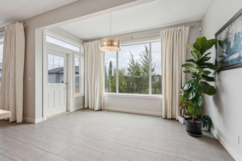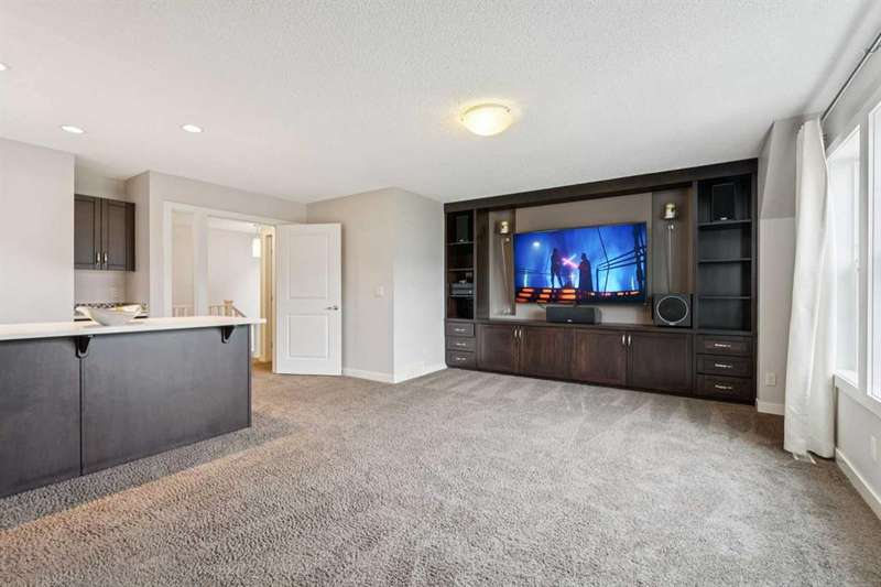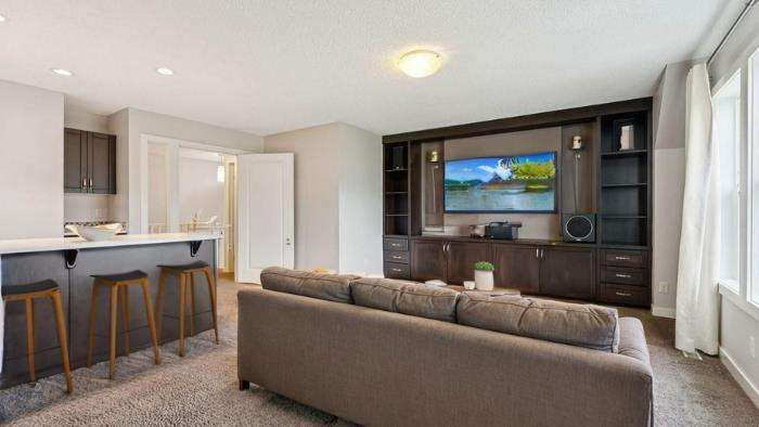 This Shane Homes “Leera” former show home in Sherwood backs directly onto a quiet ravine with pathway access and offers a rare combination of location, quality, and thoughtful upgrades. Lovingly maintained by the original owners, it features 2,352 sq. ft. RMS above grade and approximately 3,280 sq. ft. of developed living space, including a fully finished, permitted basement. The main floor is bright and open with 9-foot ceilings, oversized windows, and a kitchen designed for cooking and gathering — quartz counters, an induction cooktop, premium stainless-steel appliances, and extra cabinetry. A front office with French doors and a double-sided fireplace provides a comfortable private workspace. Upstairs, a spacious bonus room with built-in media cabinetry and a wet bar sits alongside a convenient laundry room. The primary suite includes a walk-in closet, a five-piece ensuite, and blackout blinds in all bedrooms. The basement adds flexible space for a gym, theatre, or playroom, plus extra built-in storage. The south-facing backyard has been professionally landscaped and includes a stone patio, deck, remote-controlled awning, and upgraded lighting. The insulated double garage is drywalled with built-in ceiling storage and is EV-ready. Additional highlights include LED lighting throughout, a tankless hot-water system, a high-efficiency furnace, a roughed-in central vac, and a wired-in security system. Roof and siding were replaced in July 2025. Minutes to Beacon Hill Shopping Centre (Costco, Home Depot, GoodLife Fitness) and Sage Hill Crossing (T&T Supermarket, Walmart), with easy access to parks, transit, and designated to Sir Winston Churchill High School.