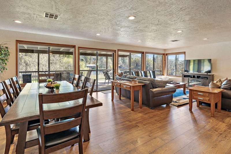 Such a special home and property offering a comprehensive package that's nearly impossible to find on the Rogue River! 1.41 irrigated acres on a beautiful section of the river with a large, usable yard and low bank river access; a turn-key home with two attached garages and a detached shop, plus RV parking with power and water hookups. Recently remodeled with a custom kitchen and baths, flooring throughout, interior and exterior paint, fixtures and other upgrades, the 2,740 SF home offers a flexible layout with diverse possibilities. Single or multi-family living (kitchen & living rooms on each level), weekend getaway and even a vacation rental, this home accommodates a variety of lifestyles! Catch steelhead from your backyard or relax on the 720 SF deck watching the river meander by while you enjoy deer, eagles and other wildlife. Wrap around asphalt driveway and a strong well with new pump and pressure tank. Owner carry considered. Seller is a Licensed Real Estate Broker in Oregon.