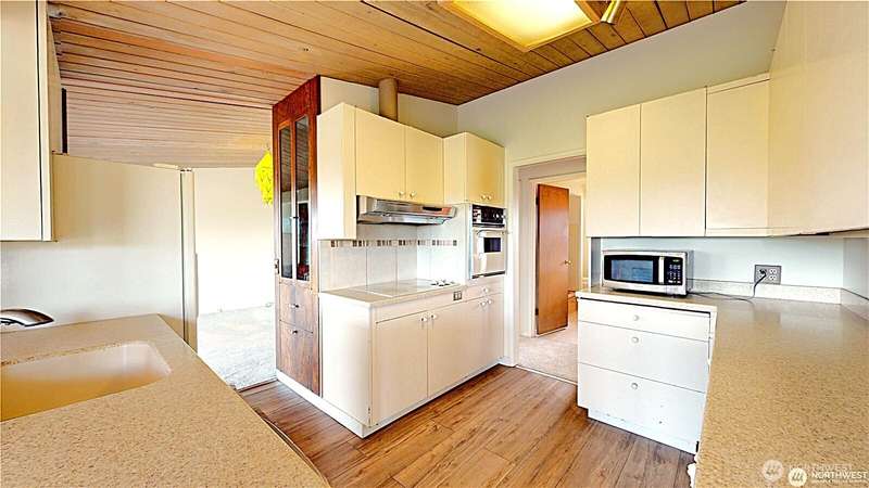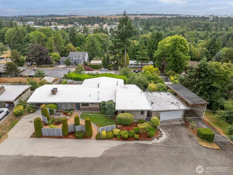 Welcome to this classic mid-century modern home with timeless appeal awaiting your personal touch. Step inside this single-story gem with a daylight basement, where the scenic windows showcase stunning views of the Cascade Mountains. Upon entering the front yard, you will see a beautiful water feature. The spacious living spaces make this home ideal for entertaining. The lower level features a practical MIL suite, complete with its own full kitchen, washer, and dryer—perfect for guests or rental income. The oversized 14,250 sq ft lot, consisting of 2 separate tax lots, a covered RV parking and a 2-car detached garage. Easy access to the 509 freeway, making commuting is a breeze while still enjoying the tranquility of this home.