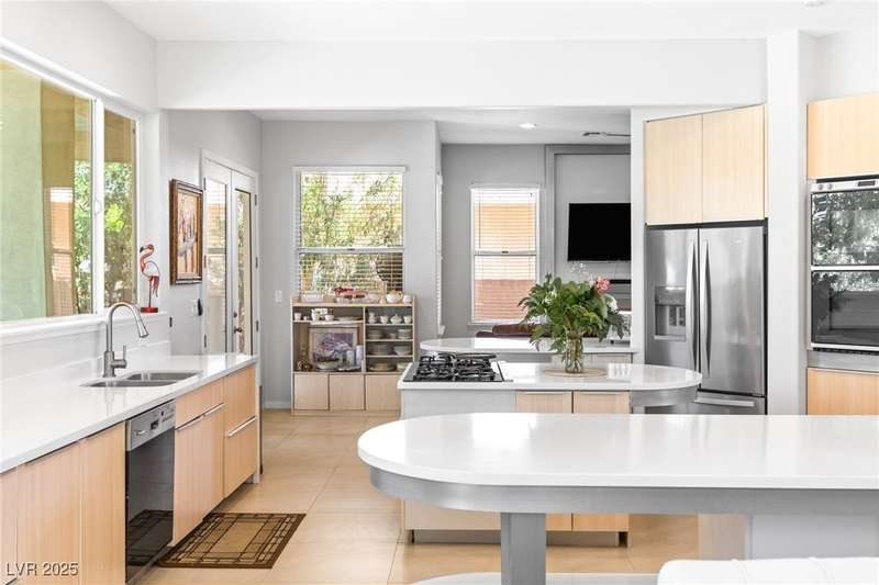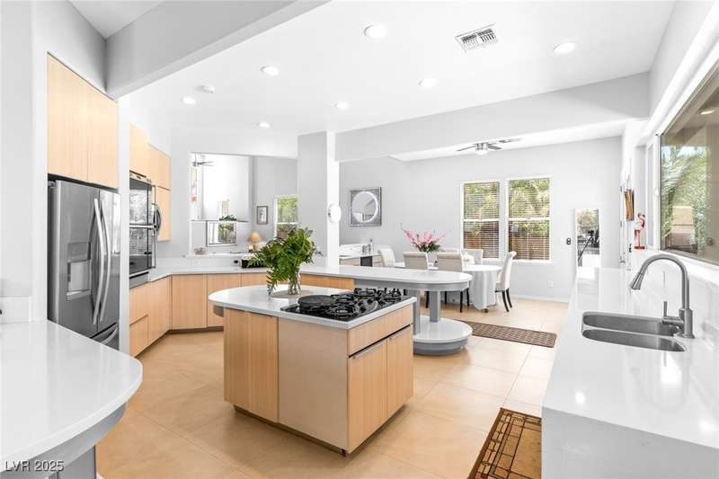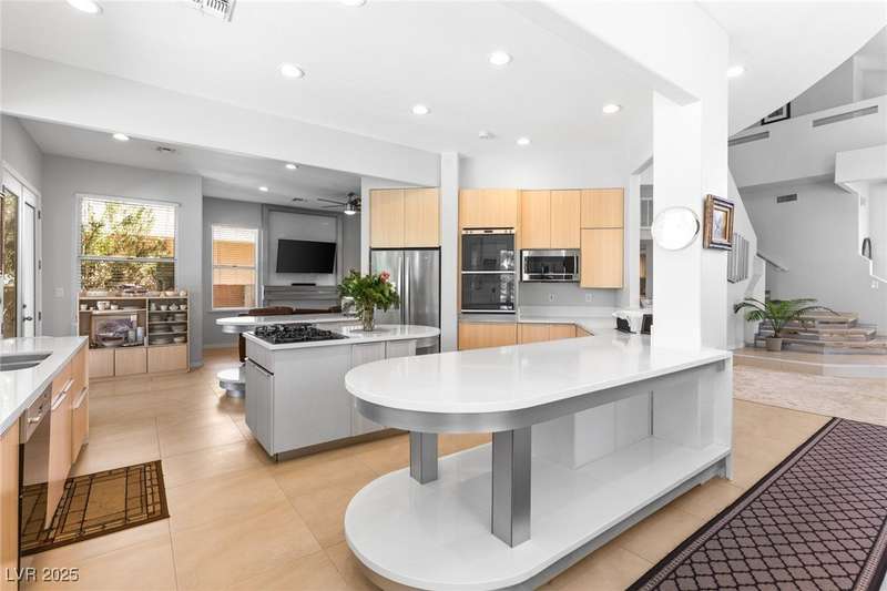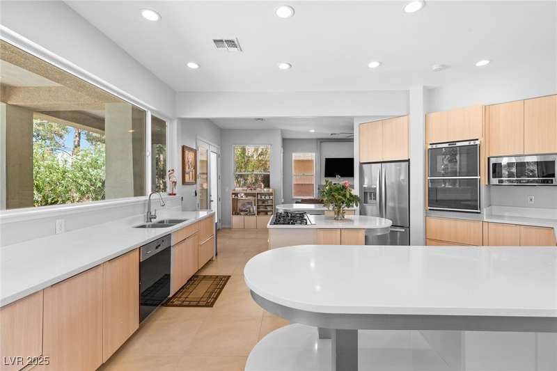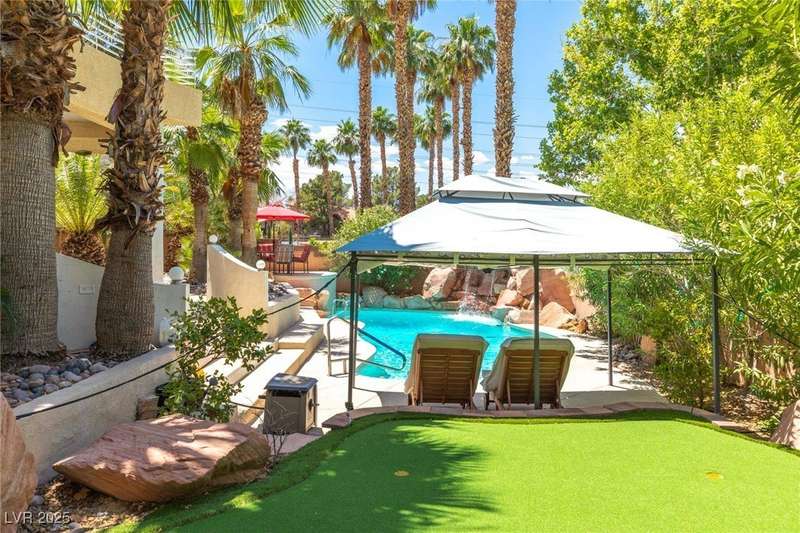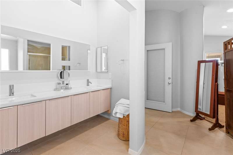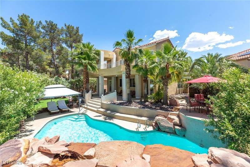 Best public school zoning in LV! Breathtaking home with its own private oasis! FULL BATH And Bedroom Downstairs! Located in beautiful Montecito Estates in Green Valley, this exceptional residence showcases stunning architecture & attention to detail. An elegant open staircase leads to a balcony that overlooks the main living area and connects the spacious upstairs bedrooms. The large, modern kitchen offers a sweeping 180 view of the lush backyard and is finished with sleek quartz countertops & premium fixtures. Perfect for entertaining, the kitchen flows seamlessly into a sophisticated dining room. Step outside to your own tropical retreat featuring a sparkling deep pool ideal for relaxing or hosting gatherings. The expansive primary suite includes a cozy loft/sitting area, and a luxurious en-suite. Expansive balcony can be accessed from the primary bedroom or loft area. All bedrooms are generously sized to ensure comfort and privacy.