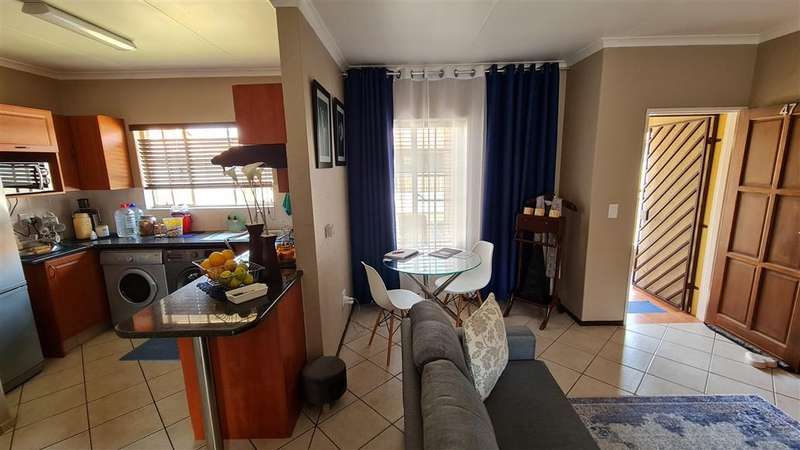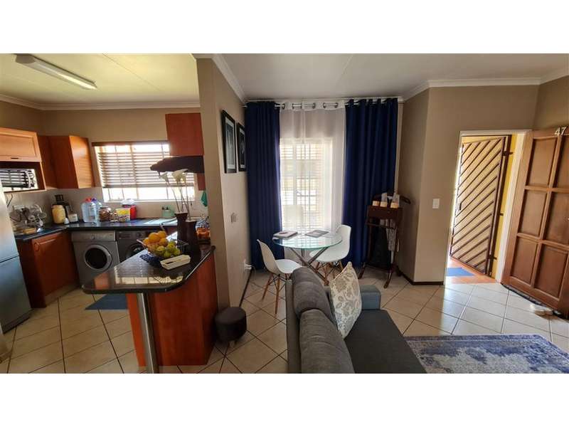 Are you looking for a well kept 2 bedroom townhouse which is located in a 24 hours secured complex, then stop and look no further! This first floor unit is free flowing and well planned offering an open-plan kitchen, living and small dining area opening onto an enclosed patio with, the the modern kitchen is equipped with granite tops, built in stove, oven and extractor and connection points for all household appliances. The tiled bedrooms have beautiful built in cupboards and a full bathroom. The complex offers a Communal swimming pool with a braai facility centre where residents can relax Fibre connection Pre-paid electricity Strict access control Close to good schools and shopping centres