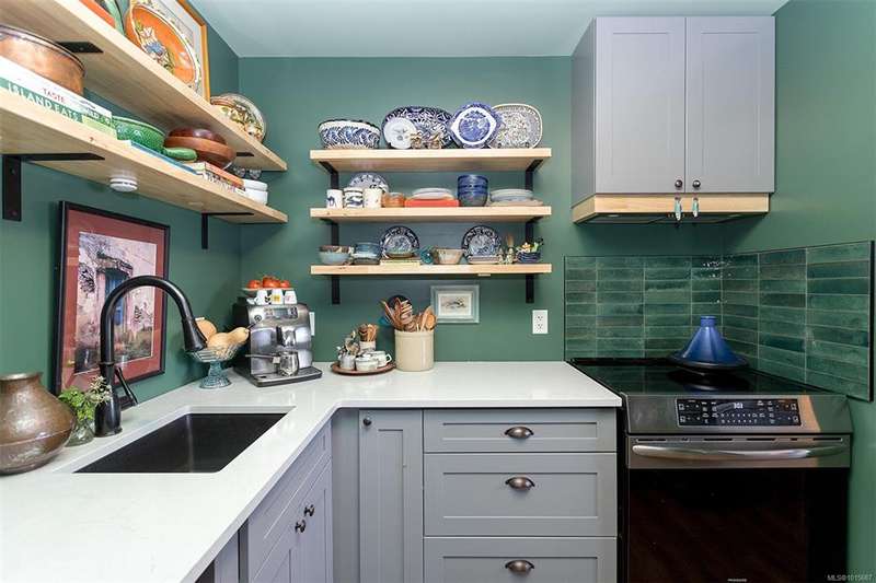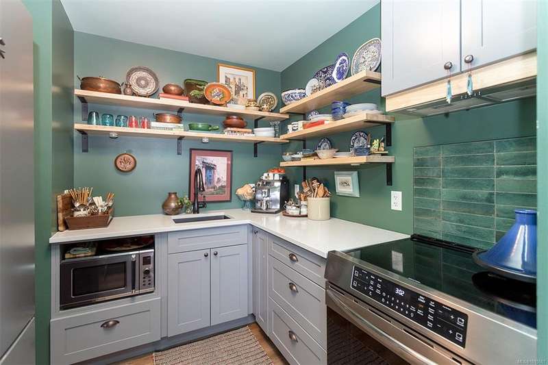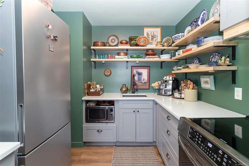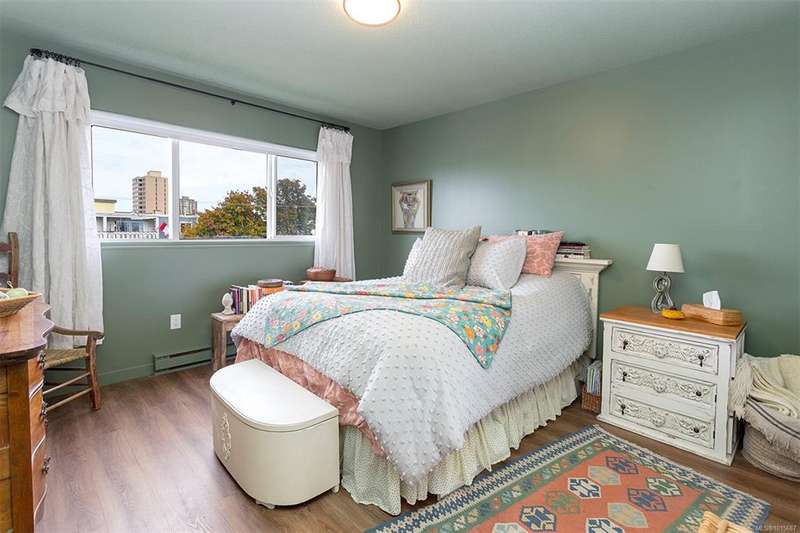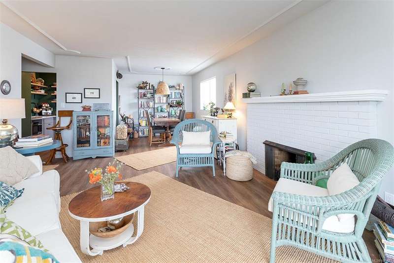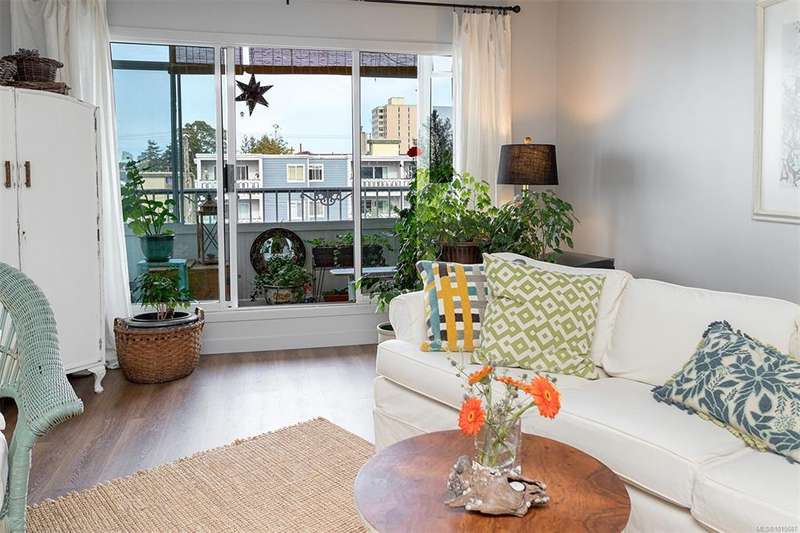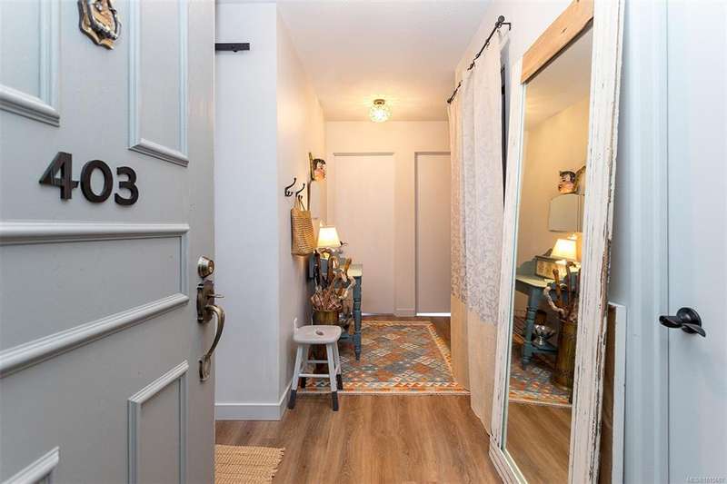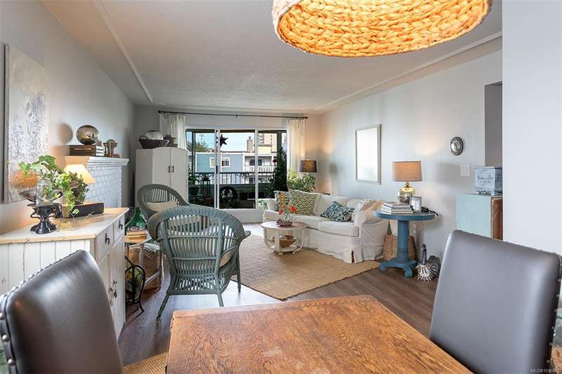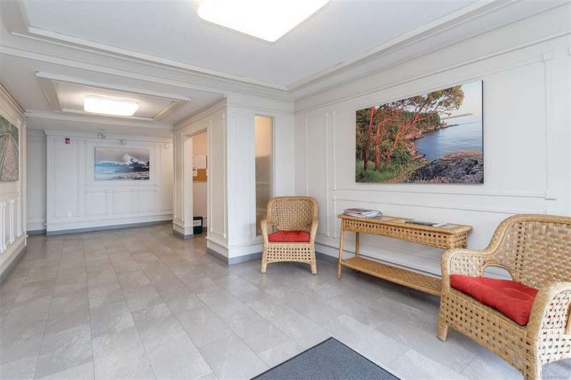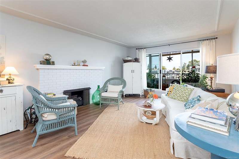 Welcome home to your Top-floor corner unit in a quiet, well-managed 22-unit building! This bright and spacious 2-bed, 1.5-bath condo offers ~ 1,100 sq ft of beautifully renovated living space. Enjoy a brand-new kitchen fully reimagined, including all the finest customizations from cabinets to shelves. All new appliances and a spacious pantry. Enjoy your new luxury vinyl flooring throughout, fresh paint, refreshed bathrooms and more - see additional updates list. The large primary bedroom provides a walk-in closet & 2-piece ensuite. Relax by the fireplace or unwind in the enclosed balcony—perfect for year-round use. Additional features include in-suite laundry, generous storage, bike room, and covered parking. Located on a peaceful street just steps to parks, the waterfront, shopping, restaurants, and transit—this is modern, turnkey living in the heart of Victoria.