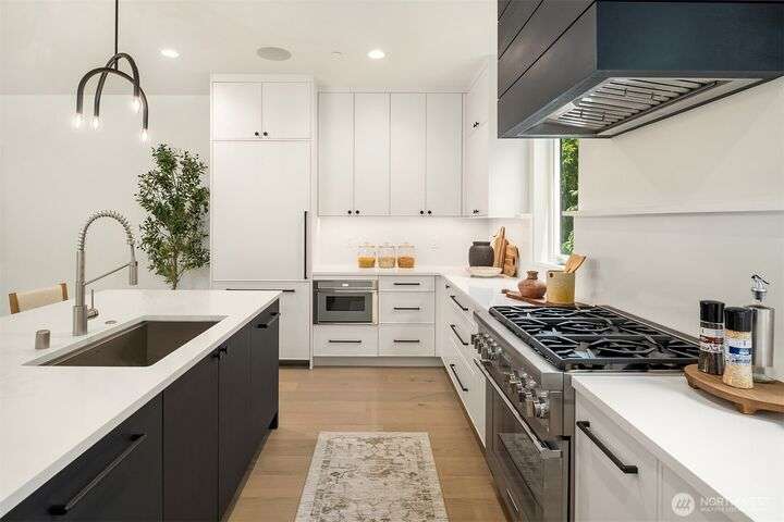 Enfort Homes presents, 'Maverick', ideally located in the Moss Bay neighborhood, just steps away from Google and all the DT Kirkland Amenities. These brand-new homes boast a modern, seamless aesthetic with elevated finishes and designer touches. 3 spacious view homes to choose from to suit an urban lifestyle ranging from 2647 to 3722sf. Large great rooms with patios and yards, sleek kitchens curated for the inspired chef, fully equipped with Thermador appliances. Lot 3 features a rooftop deck w/lake views. Stunning kitchen w/ quartz island, elegant dining, office + half bath. Entertain in lower-level bonus room w/ guest suite. Upper-level has luxurious primary suite w/ spa bath, en-suite + bedroom. A/C, 2-car garage w/ EV charger