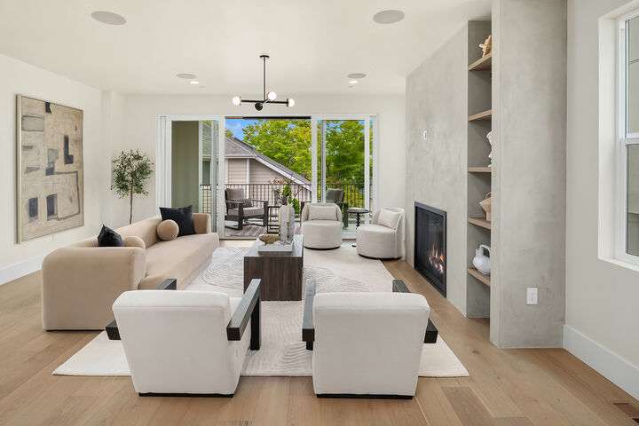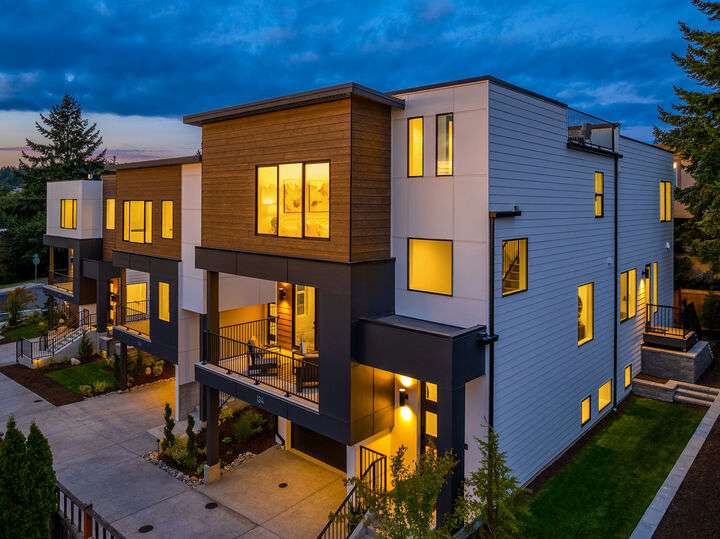 Enfort Homes presents, 'Maverick', ideally located in the Moss Bay neighborhood, just steps away from Google and all the DT Kirkland Amenities. These brand-new single family homes boast a modern, seamless aesthetic w elevated finishes and designer touches. 3 spacious view homes to choose from to suit an urban lifestyle ranging from 2647 to 3722sf. Large great rooms with patios and yards, sleek kitchens curated for the inspired chef, fully equipped with Thermador appliances. Lot 3 features a rooftop deck w/lake views. Stunning kitchen w/ quartz island, elegant dining, office + half bath. Entertain in lower-level bonus room w guest suite. Upper-level has luxurious primary suite w/ spa bath, en-suite + bedroom. A/C, 2-car garage w/ EV charger.