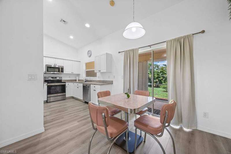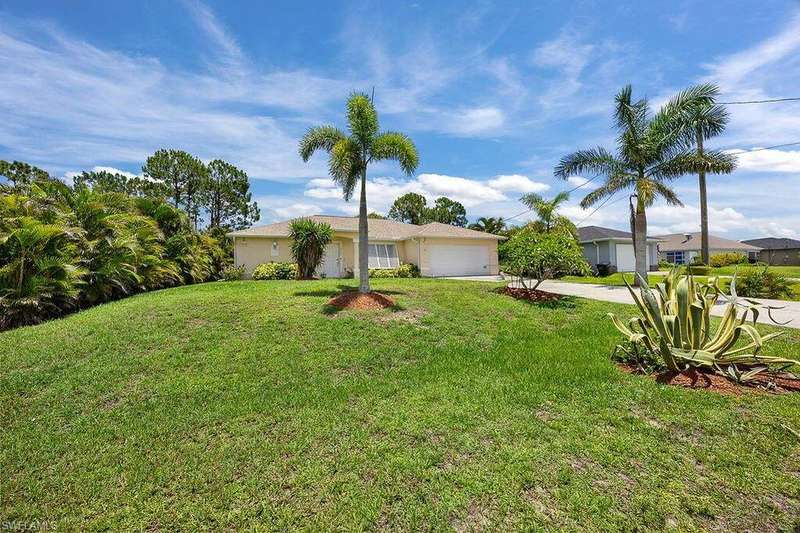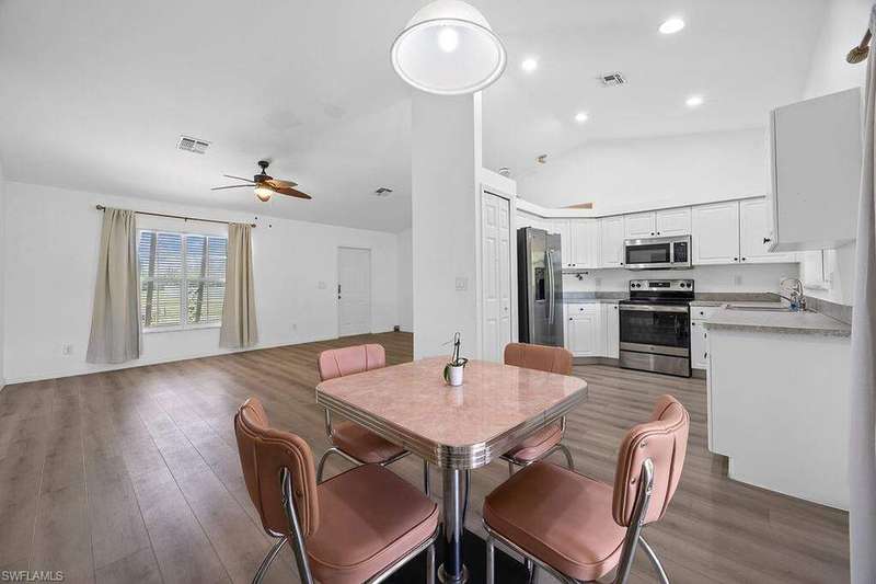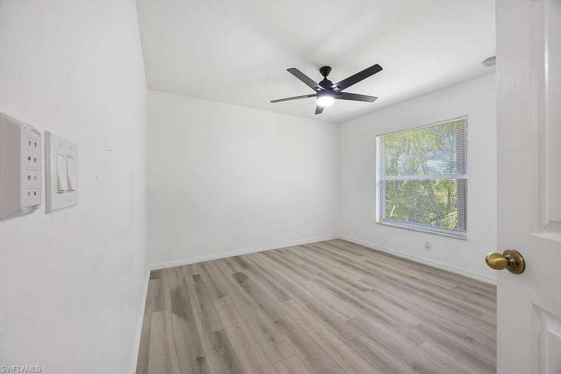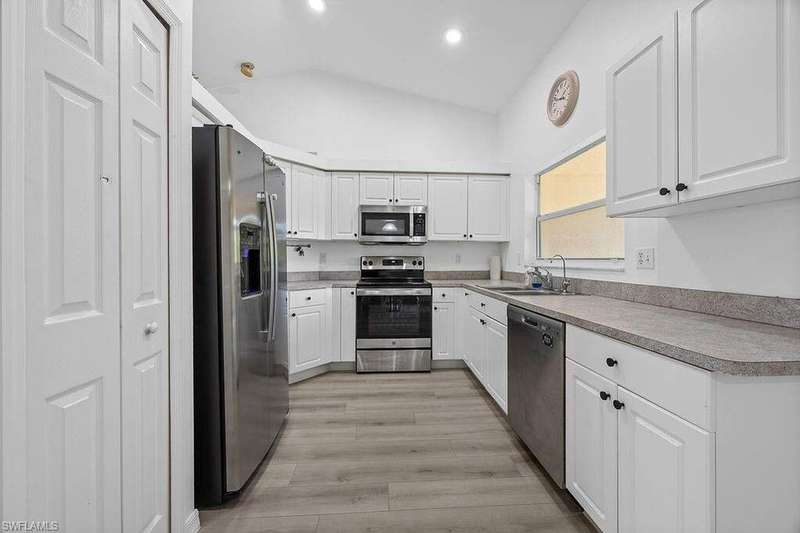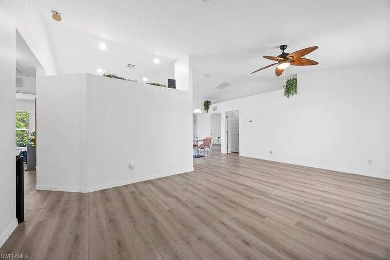 Annual Rental. 3 Bedroom Home in NE Cape Coral Welcome to this beautifully updated 3-bedroom, 2-bathroom single-family home in a quiet Cape Coral neighborhood. Offering over 1,200 sq. ft. of living space, this residence blends modern upgrades with a comfortable layout perfect for everyday living. Inside, you'll find brand new luxury vinyl flooring throughout, fresh paint, and stylishly updated bathrooms. The kitchen is equipped with all-new stainless steel appliances (2024), a reverse osmosis system, and plenty of cabinet space. A split-bedroom floor plan ensures privacy, while the spacious primary suite features dual sinks and a walk-in closet. Step outside to a large screened-in lanai and enjoy the private backyard with lush landscaping, fruit trees, and Areca palms along the perimeter. A two-car garage, smart thermostat, storm protection, security cameras, and a new roof (2023) add peace of mind. Conveniently located near schools, shopping, and dining, this home offers the perfect combination of comfort and convenience.