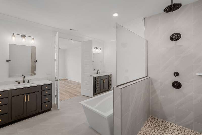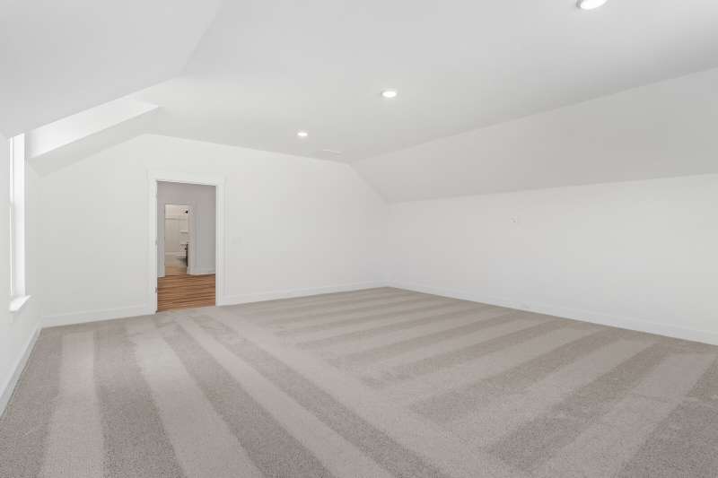 The luxurious owner's suite offers a true retreat, featuring a custom-tile shower, soaking garden tub, and dual walk-in closets for ultimate convenience. A main-level guest bedroom, versatile bonus room, and an expansive three-car garage provide all the space your family needs.