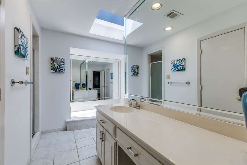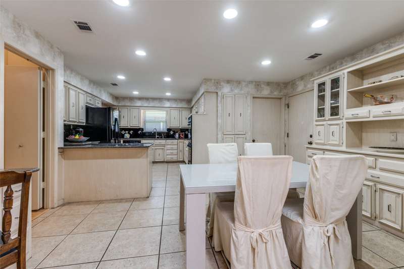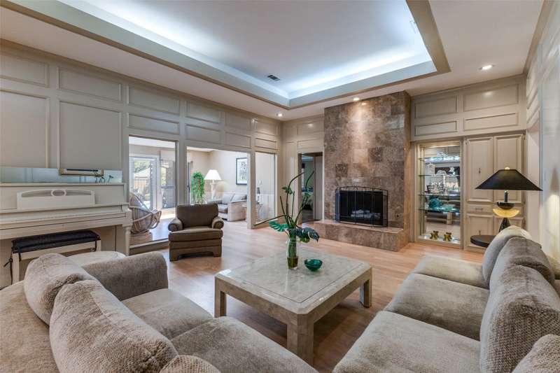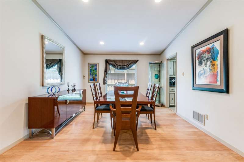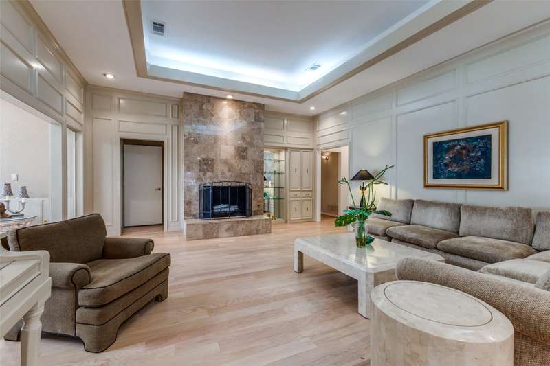 Welcome to this transitional 5-bedroom, 3-bath, 2 living area residence in the friendly neighborhood of Prestonwood, near Brentfield Elementary. Designed with both comfort and functionality in mind, the home offers an inviting floor plan highlighted by a spacious living room with a stunning marble fireplace and cased ceiling. The formal dining room impresses with its vaulted ceiling, while the kitchen features abundant cabinet space, granite countertops, double ovens, a built-in microwave and a generous breakfast area with built-ins. A bright sunroom-solarium with skylight and vaulted ceiling fills the home with natural light, opening to the pergola, patio, pool and spa within a fenced private backyard. The spacious split primary suite offers double vanities, two walk-in closets, a separate shower and a relaxing garden tub. A versatile fifth bedroom or private game room provides additional space for entertaining or quiet retreat. Newly refinished light wood flooring shines throughout the living room, dining room, sunroom and walkways enhancing the home's bright and open feel. In this great three-way split bedroom arrangement, one of the bedrooms is thoughtfully outfitted with built-ins, making it ideal for a home office. The property also includes a second fenced yard designed for a dog run off one of the other bedrooms. Distinguished by its generous spaces, thoughtful design and unbeatable location, this home truly has it all. Conveniently close to Preston Road, the Dallas North Tollway, George Bush, Hillcrest Village, parks, restaurants and kids activities and situated in a Public Improvement District with seven days a week neighborhood police patrol - this Prestonwood residence offers both lifestyle and peace of mind. Per sellers, the roof was replaced in 2019.