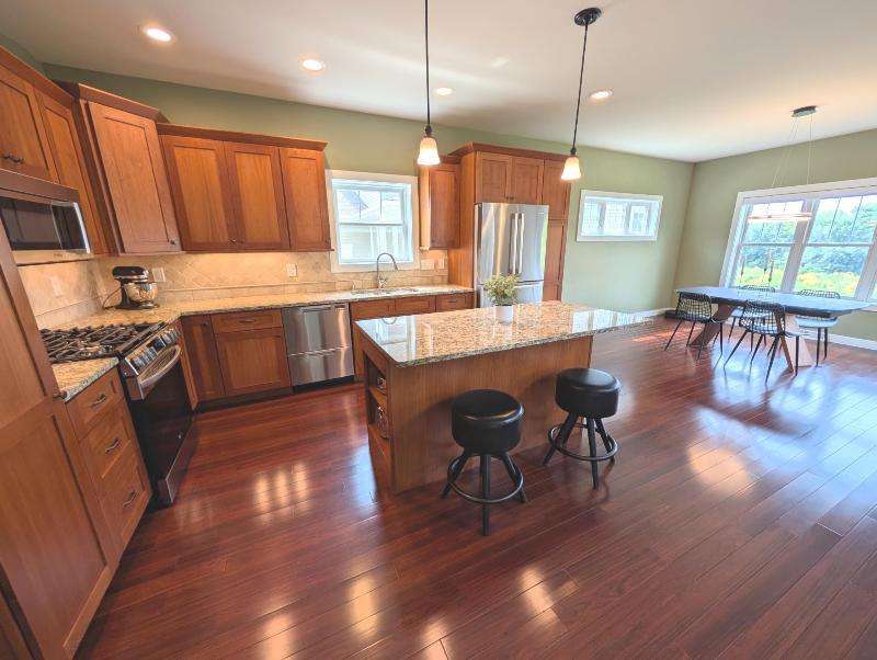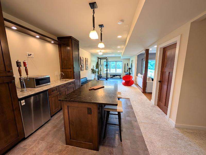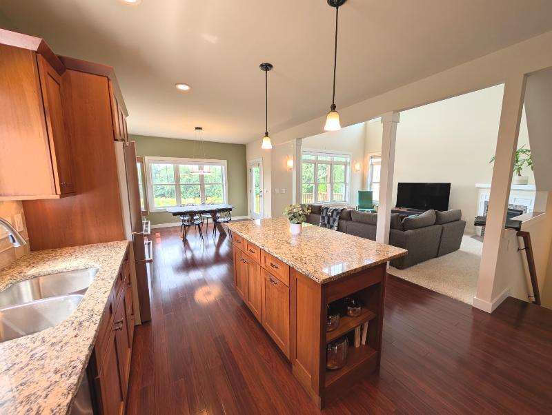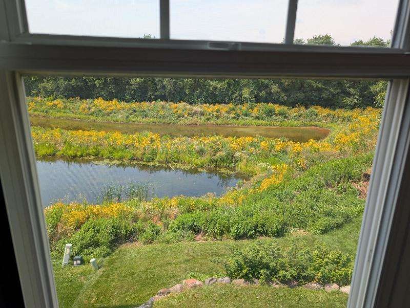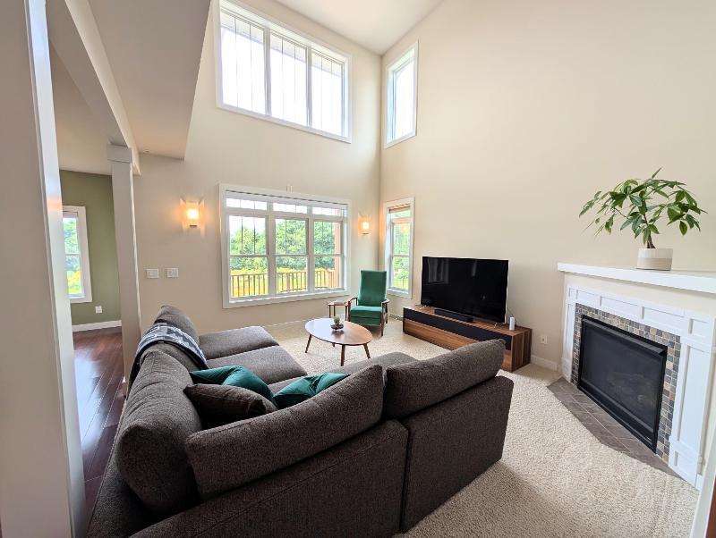 Enjoy sunset views over twin ponds from your two decks & patio. This custom home features a two-story great room that floods the home with light & frames the ponds & prairie. With the chef's kitchen (granite counters, upscale appliances, solid maple wood cabinets) open to both dining & living room with fireplace, the main level is perfect for everyday life & entertaining. Upstairs the primary suite features a spa bath, walk-in closet, & private deck. The walkout lower level is perfect for movie night or a cookout on game day with its wet bar, full bath, & media room that opens to the patio. Thoughtful extras: Hunter Douglas power shades, 8'+ / LL ceilings, LL fridge & kegerator, & modern LED lighting. Conveniently located minutes from the beltline, Ice Age Trail trailheads, & Epic.