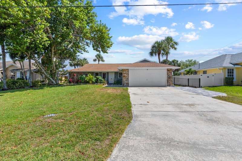 STEAL OF A DEAL! PRICE REDUCED TO SELL NOW! $100k below original listed price! Well maintained & updated true 4-bedroom home (+ office) with access to the C-24 Canal, a wide locked canal (no river or ocean access). You can boat, jet ski, kayak, paddleboard, water ski or fish! Public boat launch nearby. Open floor plan, custom kitchen cabinetry, quartz countertops, recently remodeled & tastefully upgraded primary bathroom, split bedroom floor plan, newer roof (2021), Hardi-Plank (concrete composite) siding, newly painted exterior, fenced yard, 2-car garage + driveway parking for 5 vehicles, stone fireplace. Impact resistant sliding glass door & some impact windows. Boat dock permissible. VA & FHA eligible. If you snooze.... you WILL lose