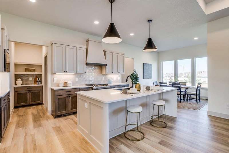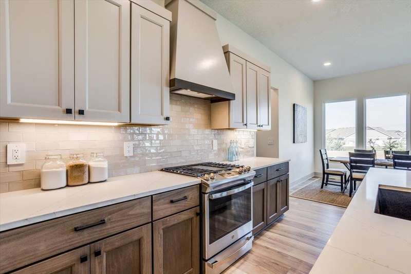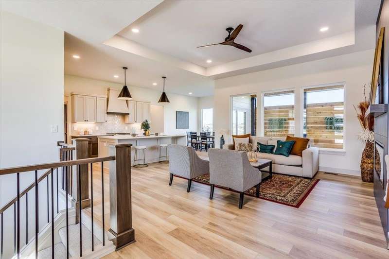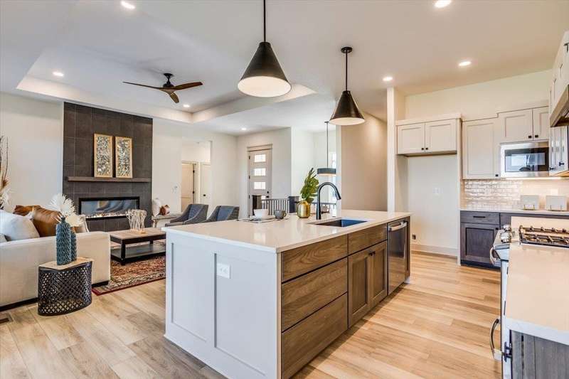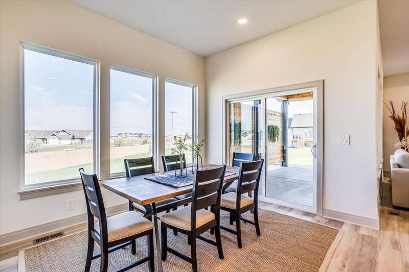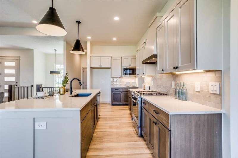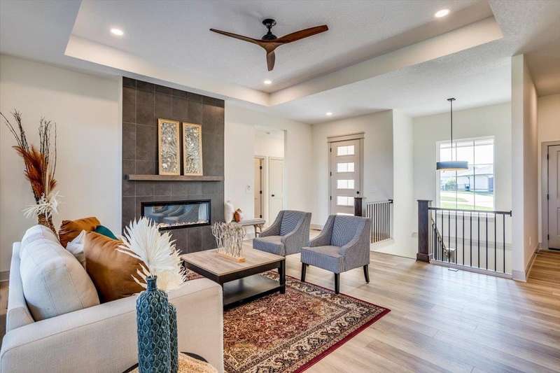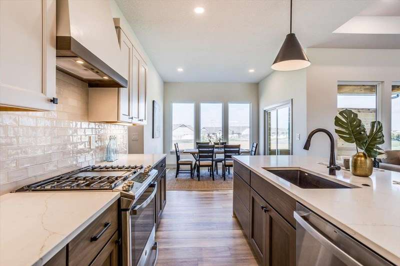 Welcome to Socora's Pine Grove Plan featuring zero entry access for effortless living. The open concept main floor offers an inviting living space, perfect for entertaining. The spacious kitchen boasts quartz countertops, ample cabinetry, a large island, walk-in pantry and stainless appliances. A walkout patio extends the living space to the outdoors, ideal for family gatherings. Retreat to the primary suite with an en-suite bathroom featuring dual vanities, fully tiled shower, and a large walk-in closet conveniently connected to the laundry room. Two additional bedrooms, and a bath complete the main floor, ideal for family or guests. The daylight basement is fully finished with a large family room, walk-up wet bar, two more bedrooms, and bath. Fontana offers a zero-entry pool with splash pad, playground, walking paths and lakes. It's also minutes away from NewMarket Square for all your shopping and dining needs. A $175 mailbox key fee is collected at closing. LOWER SPECIALS, LOWER TAXES AND MAIZE SCHOOLS. All information deemed reliable and not guaranteed. OPEN THURS - MON 1:00-5:00 OR ANYTIME BY APPOINTMENT.