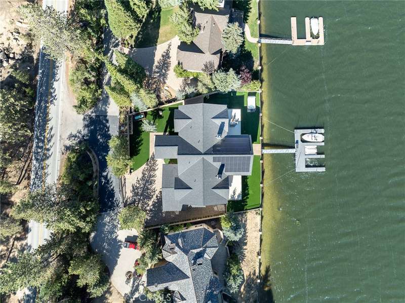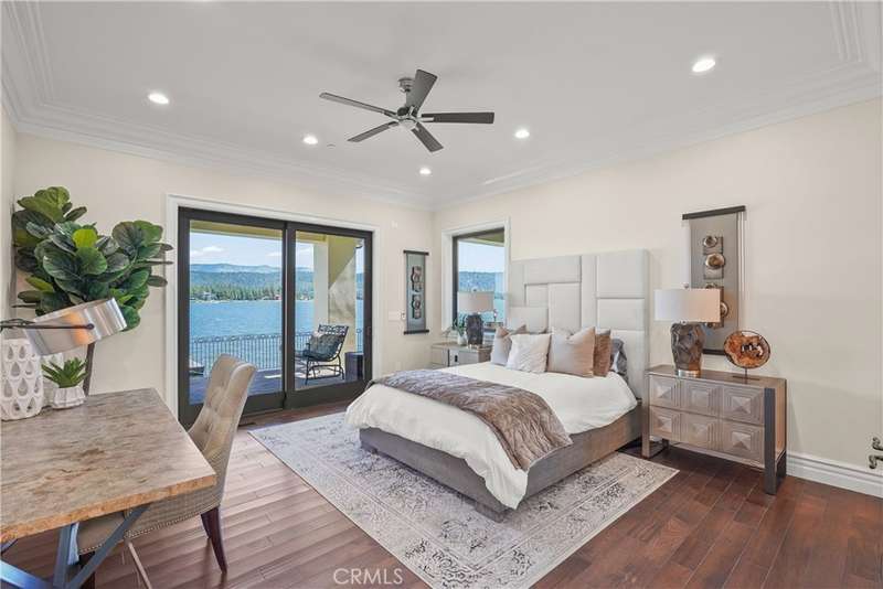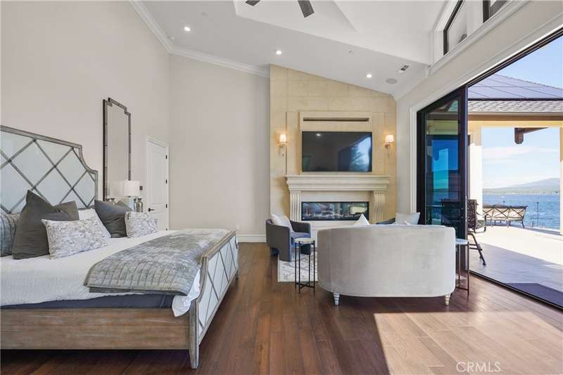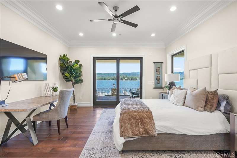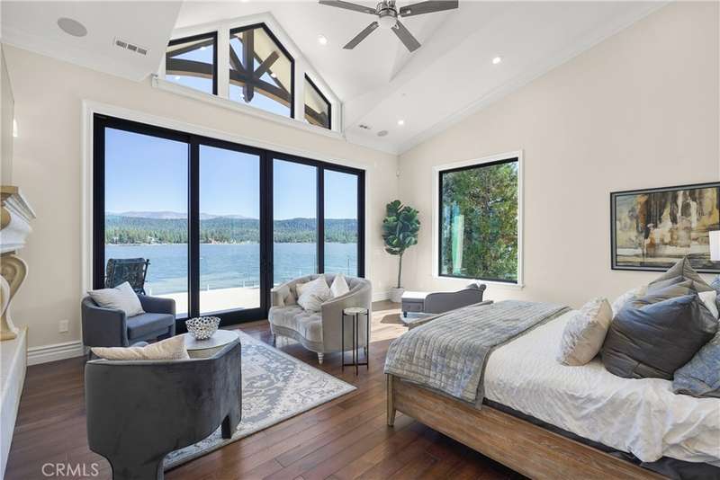 This fully modern remodeled lakefront home in Fawnskin, Big Bear Lake, in a private gated area offers a perfect blend of luxurious living and natural beauty. With six spacious bedrooms 6.5 bathrooms including a steam shower in the master suite. plus an extra game room and family room. The open-concept floor plan allows for seamless flow between the living spaces, with floor-to-ceiling windows that bring in an abundance of natural light while showcasing breathtaking lake views. Large glass doors open directly to outdoor patios, offering the perfect setting to enjoy a drink and take in the serene surroundings.