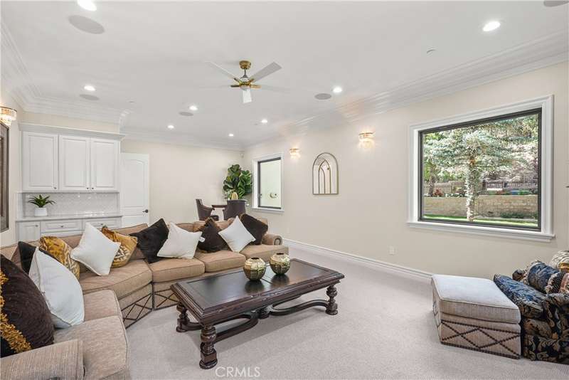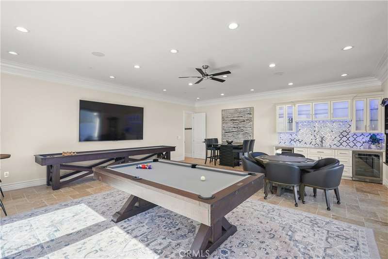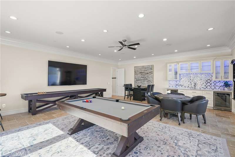 The home boasts a stunning island kitchen equipped with high-end finishes and LED lighting, which can be controlled remotely from your phone for convenience. This chef-inspired kitchen is perfect for entertaining guests or enjoying a quiet meal. Adjacent to the kitchen is a cozy family room with ample seating, providing a great space for relaxing and socializing. The property also includes a game room with a bar area, ideal for hosting parties or enjoying casual evenings with loved ones.
