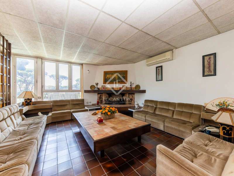 Lucas Fox presents this wonderful house with an area of 536 m², distributed over three floors, on a 702 m² plot . It requires renovation, but offers great renovation potential to become an impressive dream family-friendly home, in an exclusive area of Castelldefels, La Pineda. As soon as we enter the house, we are greeted by a spacious private parking lot, with capacity for up to four cars. From this floor, we also have access to a large storage room and a room that is currently used as an office. If we continue surrounding the house through the garden, we will find a huge pool, which offers incredible privacy, thanks to the high walls that surround the house. Finally, there is a wonderful and spacious porch, ideal for hot summer days, since it is very cool. Going up to the first floor, we find a spacious living-dining room with direct access to a magnificent terrace that overlooks the pool, a spacious kitchen and four large bedrooms, all with built-in wardrobes and three full bathrooms. The second and last floor has a large multipurpose room of 70 m2 and where you can enjoy excellent light, due to the large windows that surround it. Also on this floor, we also find a full bathroom and a large terrace that also has a barbecue. This magnificent house, with its unbeatable location and characteristics, would be an ideal property for families who want to live close to the beach, international schools and with easy access to Barcelona airport. Get in touch for more information.
