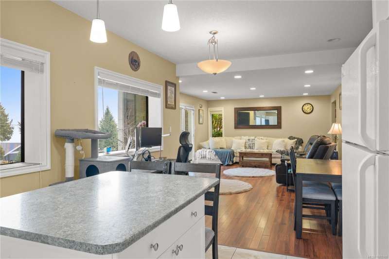 Welcome to 5750 Norasea Rd, a remarkable 5 bedroom + den, 3 bathroom home in desirable North Nanaimo. Perched on a rare third of an acre corner lot, this nearly 4,000 sq ft residence offers sweeping ocean views and an abundance of space for families or investors alike. The main level showcases bright, open living with multiple view-filled gathering areas, generous bedrooms, and seamless indoor-outdoor flow to take in the coastal setting. A triple garage provides ample parking and storage, while the lower level features a spacious 2-bedroom suite, perfect for extended family or rental income. Combining size, function, and location, this property is an exceptional opportunity in one of Nanaimo's most sought-after neighbourhoods.Measurements are approximate and should be verified if important. Book your showing today!