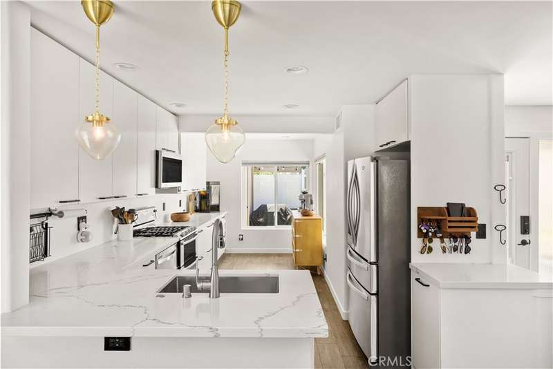 The custom kitchen is a chef's dream, featuring rich granite countertops, new cabinetry, a deep basin stainless steel sink, hands-free faucet, gas range, microwave with exterior exhaust, dishwasher, and clever storage touches like an auto-opening trash cabinet. The smart home features shine here, with Lutron Caseta smart switches, Schlage Sense front door lock and hub, and a Nest thermostat -- all HomeKit compatible for seamless control. Every room has been elevated with recessed LED lighting, custom closets, and updated double-pane windows and sliders for energy efficiency and quiet comfort. The HVAC system, ducting, and tankless gas water heater (just 3 years old) ensure year-round comfort and efficiency, while the reusable K&N air filter keeps the air fresh and clean.