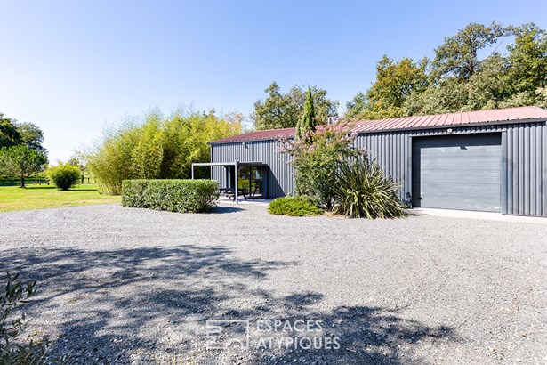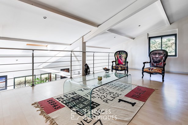 The landscaped grounds, carefully planted with trees, offer numerous private areas to enjoy nature and are complemented by a separate 200 sqm artist's studio, ideal for a creative or professional project. It is partly furnished with a living room and a bathroom with WC. This space could also be an ideal space for storing classic cars or even creating a second home.