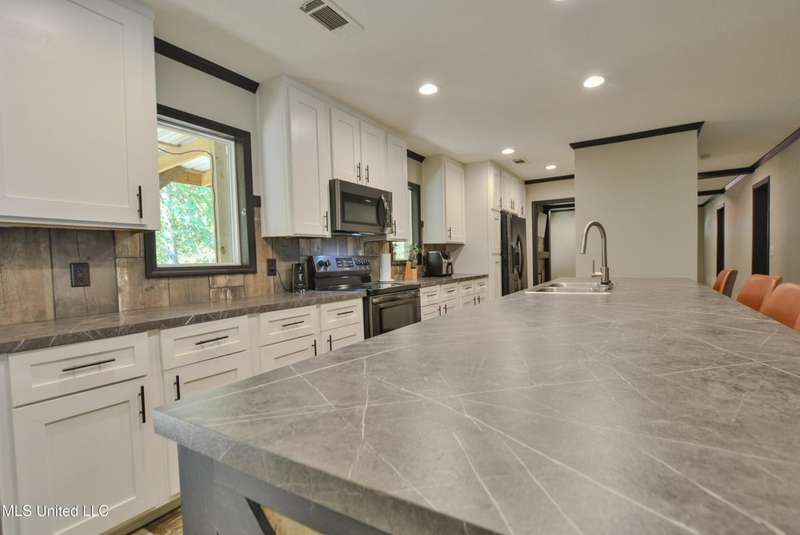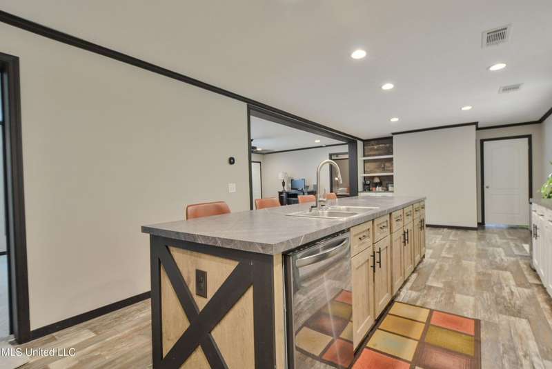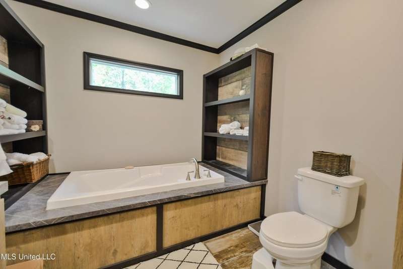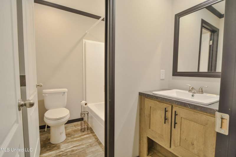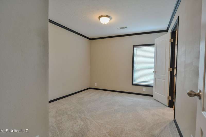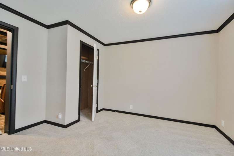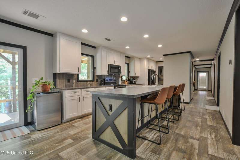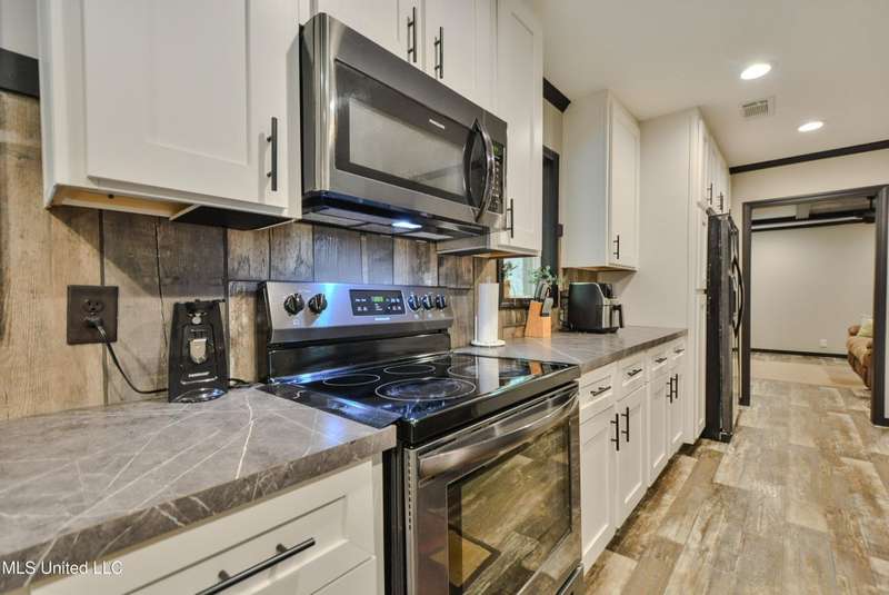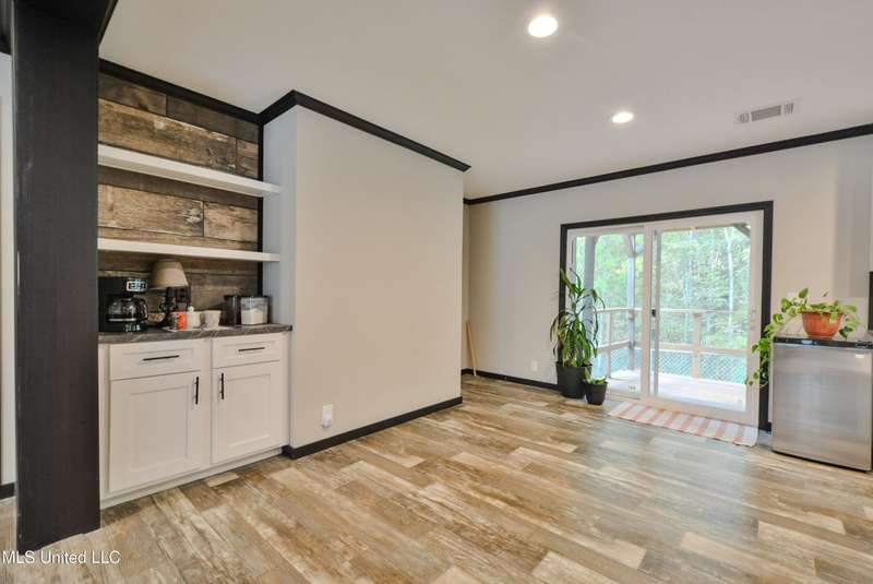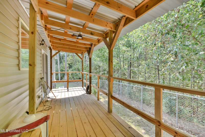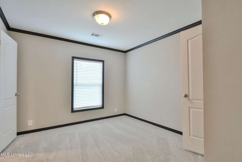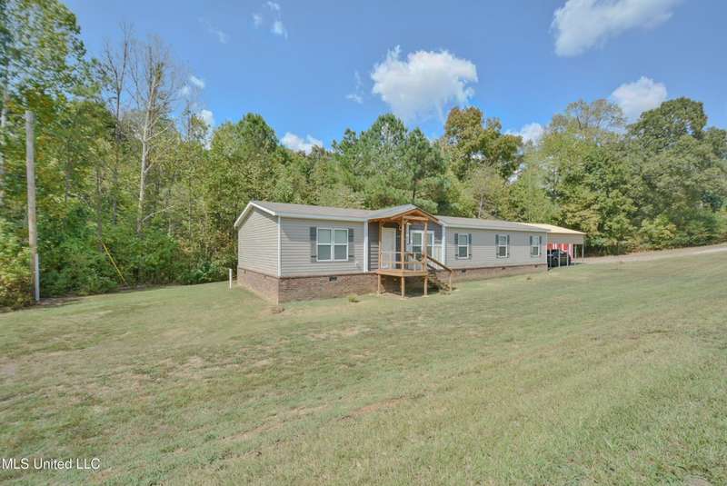 Welcome to this beautiful four-bedroom, three-bath home in the peaceful Creekwood Subdivision of Byhalia. Built in 2021 and set on a serene 1.2-acre pie-shaped lot backing to woods, this well-maintained home offers a perfect blend of comfort and style. The spacious den features wood-accented walls, a ceiling fan, and an electric fireplace, while the living room provides additional space for relaxing or entertaining. The large kitchen boasts stainless appliances, abundant cabinets and counter space, a wood backsplash, smooth cooktop stove, and the stainless refrigerator remains. A charming coffee bar area, open-shelf pantry with cabinets, and a breakfast area add to the functionality. The primary suite includes a large walk-in closet and a luxurious bath with double sinks, soaking tub with towel shelving, and a separate tiled shower. Bedrooms two and three share a Jack-and-Jill bath, with an additional full bath located near bedroom four and the side entry. Interior details include recessed lighting, wood beamed ceilings, luxury vinyl flooring, carpet in bedrooms, and ceiling fans in the primary bedroom, living room, and den. Outside, enjoy the covered front entry, covered rear deck overlooking the woods, and a fenced area behind the home. Extras include a two-car carport, 8x12 red storage building (only four years old), laundry room with cabinets, and two Arlo Essential wireless security cameras. Located just 15 miles from Collierville and 12 miles from Olive Branch, this property offers peaceful country living with convenient access to town.