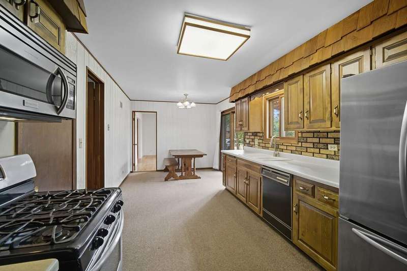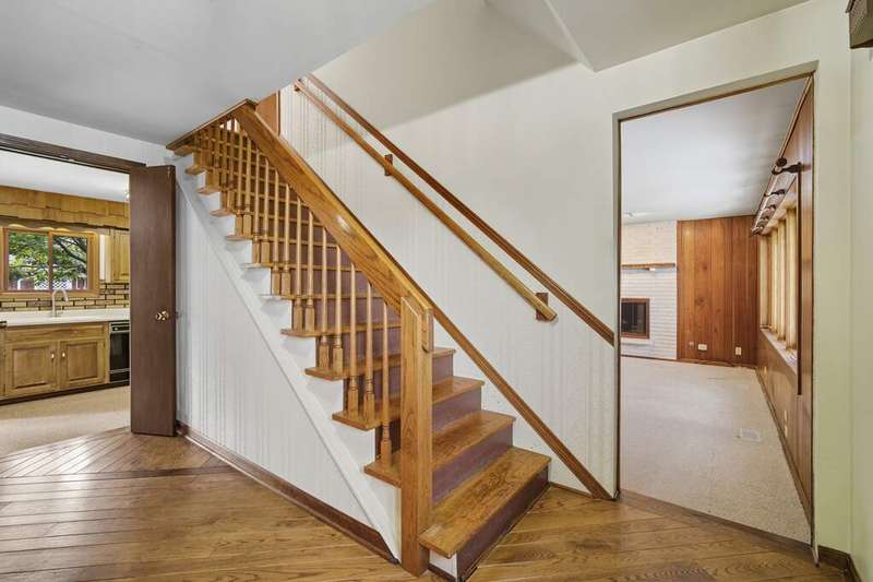 Step into a well-preserved time capsule across from Aspen Trails park, where you'll find nearly 4,000 sq ft of living space and three levels of retro charm. One of the largest homes in this rarely available subdivision, it sits on a beautifully landscaped 10,080 sq ft lot (96 105) adjacent to the park which has a baseball/softball field, 2 Soccer fields, a Basketball court & tennis court, 2 playgrounds, a covered shelter with picnic tables and benches, a walking path, and lots of open green space. Inside, the main level features hardwood floors in the living and dining rooms, and an eat-in kitchen with sliding doors to the backyard. A separate family room with a fireplace (this room could be a fifth bedroom) and a laundry room complete the main level. Upstairs, you'll find four generous bedrooms, including a large primary suite with a full bath, three additional bedrooms served by another full bath, and a sizable walk-in closet off the hallway. The finished basement boasts an expansive recreation room, a flex room for an office, a gym or a craft room, a workshop, and a mechanical room. Enjoy the lush, fenced backyard with a pergola-covered deck, raised garden bed, and perennial plantings. Recent updates include a new HVAC system in spring 2025, a newer water heater (2014), and a sump pump (2020). Taxes for 2023 were $10,618.15 (with homeowner and senior exemptions). With a bit of imagination, this retro gem offers limitless potential-envision how thoughtful updates could transform this 1970's character into a space tailored to your own style and way of living. It's a rare opportunity to own a spacious residence in a prime location across from the park-ready for you to enjoy as is or personalize to your taste.