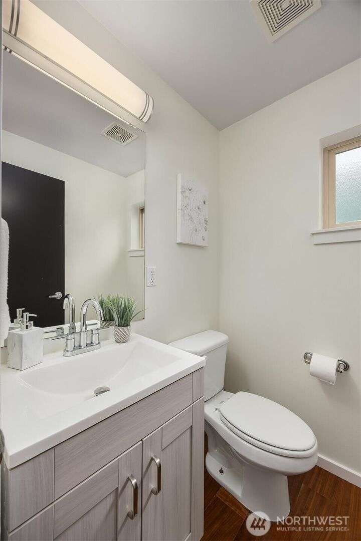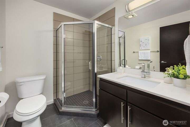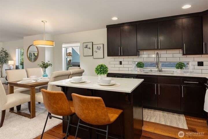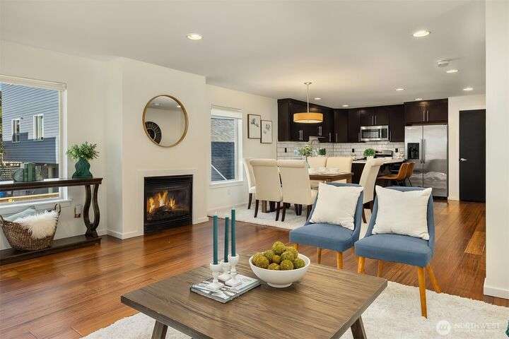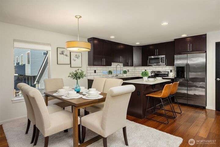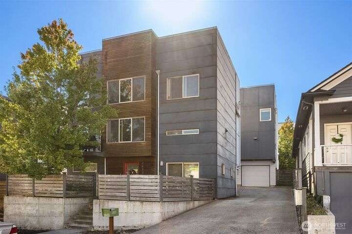 A unique offering awaits with this stylish and versatile townhome! Nestled off the main road, it offers a serene setting with both privacy and quiet. The main level features an open-concept layout with a spacious kitchen, bamboo flooring, pantry, and convenient powder room. Upstairs, you’ll find two generous bedrooms, each with vaulted ceilings and ensuite baths. The entry-level bedroom with a ¾ bath and private entrance provides flexible living options—perfect for a home office, guest suite, or MIL space. This home has it all, including an attached 1-car garage and a fully fenced backyard. Enjoy proximity to West Seattle, Alki Beach, neighborhood parks, and a variety of local restaurants, with quick access to downtown Seattle!