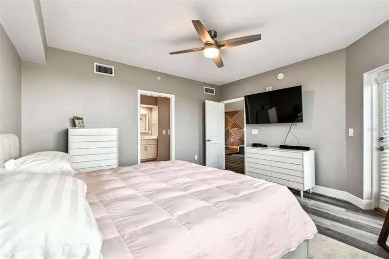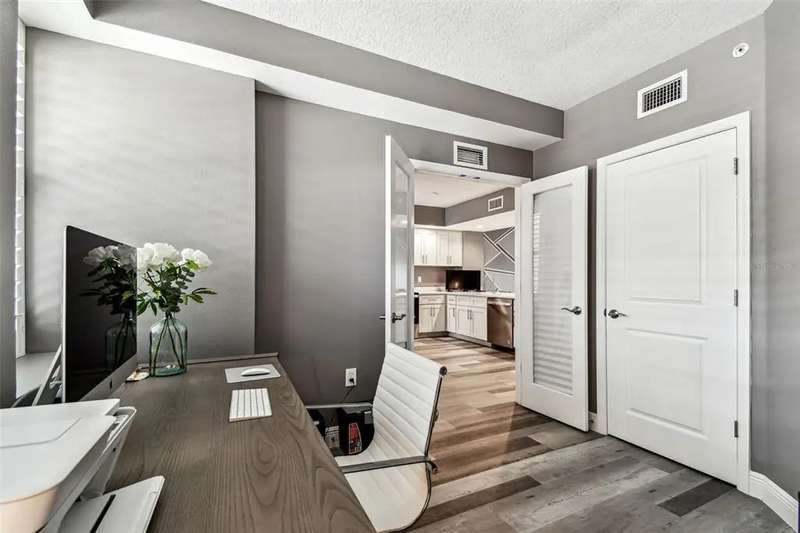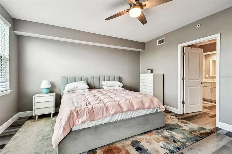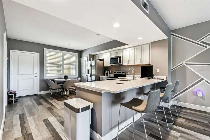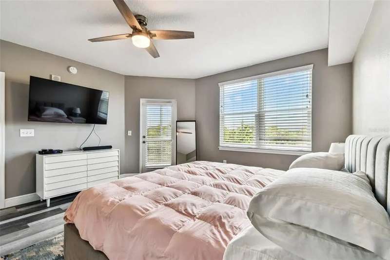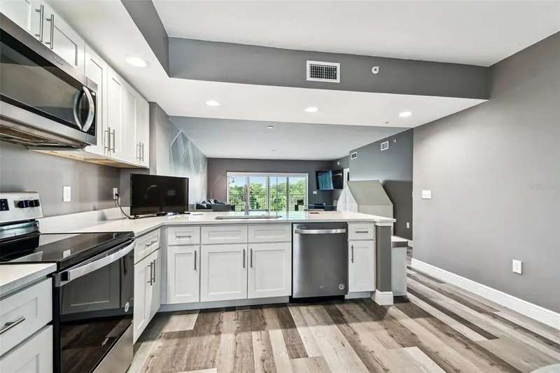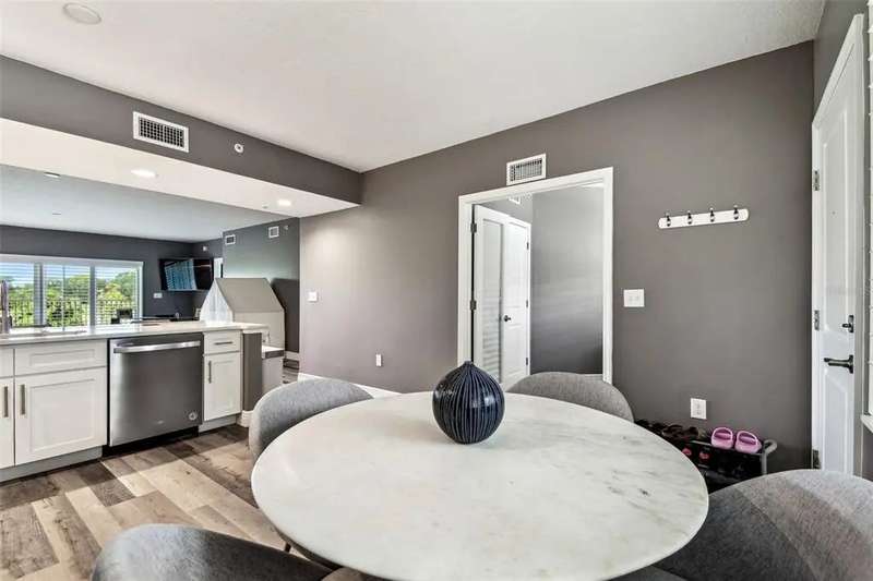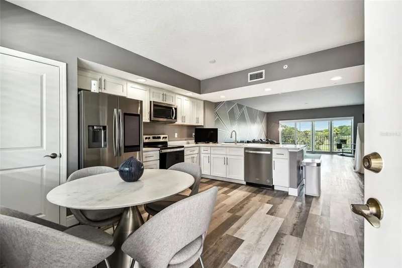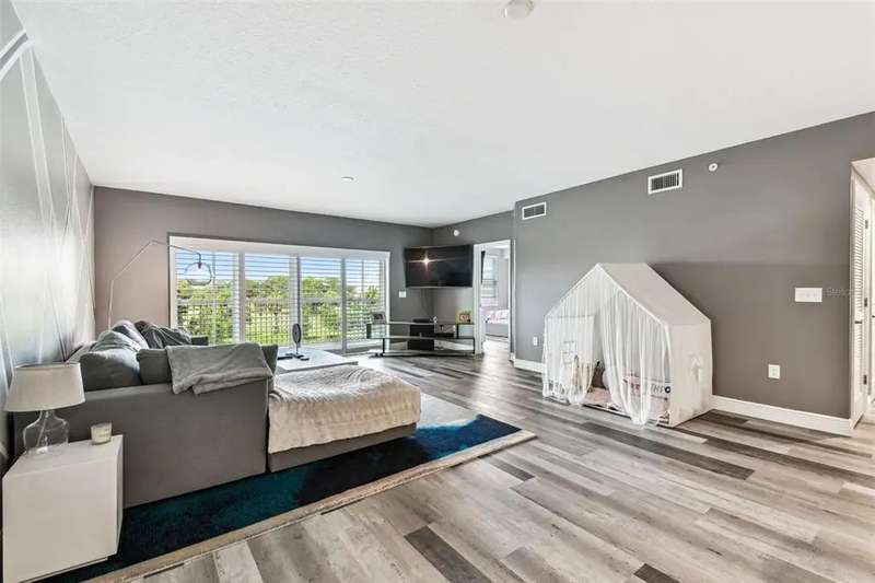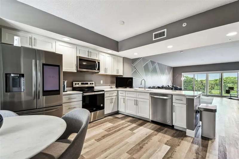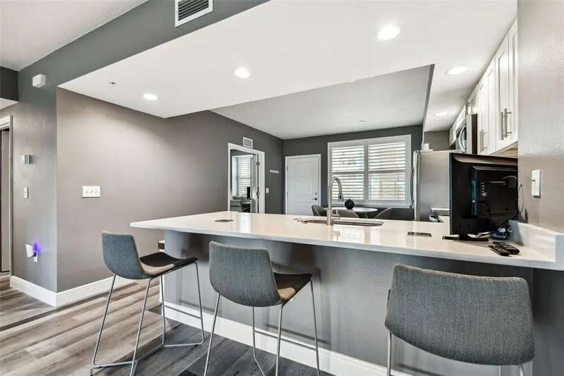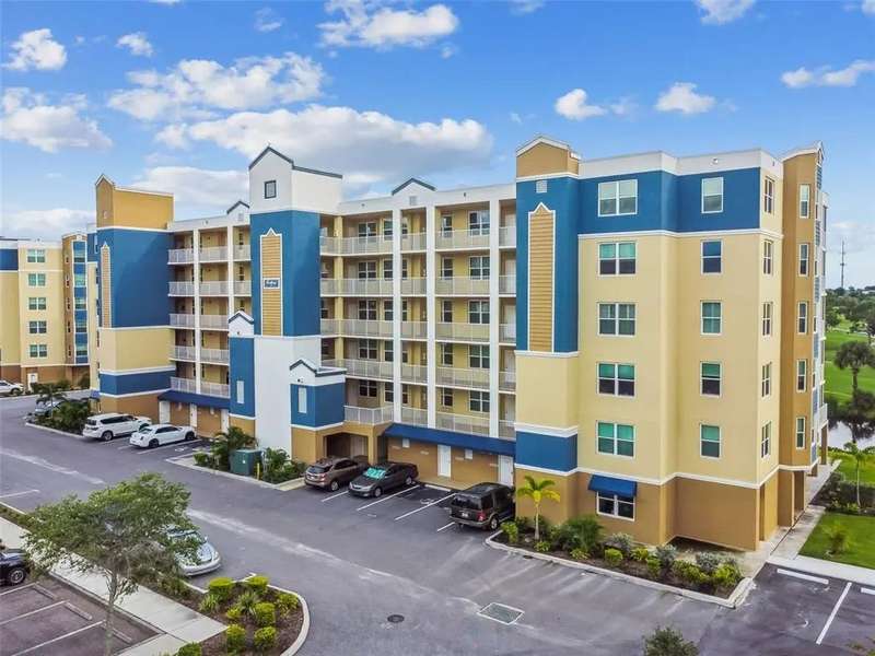 Welcome to your Luxurious Condo located in the resort style Golf Lake Condo community! This 2020 built, all concrete construction condominium is well designed and engineered for comfort, views, peaceful security & peace of mind being located in Flood Zone X. This condo lives very large due to an open floorplan, high ceilings, and plenty natural light. This spacious 3 bedroom/2 bathroom condo includes a beautiful views off the large balcony. This condo boasts High Ceilings, Luxury Flooring, professionally Painted walls in a warm neutral gray, and Plantation Shutters! Enjoy the large kitchen with stunning cabinetry, quartz counters, high end Stainless Steel appliances & plenty of room for dining at a kitchen table or the bar along the formal dining space. Invite all of your friends over! There is plenty of room to host everyone in the large living space that opens up to the spacious balcony with stunning views of the lake. The primary suite is generous in size, has a private entrance to the private balcony, and stunning en suite bath! The 2 additional bedrooms are well designed with bedroom #2 located near the guest bath. The 3rd bedroom is a flex room and can easily be used as a home office. Another upgrade in addition to the washer & dryer is the water softener is also included! And if you need more storage, you have a private storage closet located across the hall. This all age and pet friendly community includes 2 Pools (one is heated), Hot Tub, resort style Clubhouse with full kitchen, lounge area, and private meeting room. The low HOA fee covers Internet, Exterior maintenance, grounds maintenance, pest control, fully funded reserves, water, trash, sewer, and cable! You only have your electric bill after the HOA dues. Don't miss this exceptional opportunity to enjoy living the Florida Lifestyle centrally located close by Beautiful Beaches, Parks, Shopping, Airport, and so much more. Have peace of mind of a very well managed HOA, newer all concrete construction community with luxurious amenities.