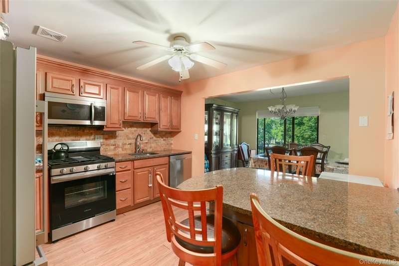 Spacious and bright 2nd floor 2 bedroom 1.1 bath Condo in sought after Town N Country 1. Updated kitchen w/granite countertops and matching breakfast bar, newer stainless appliances and newer glass slider in bath. Large living room and dining room w/slider leading to private terrace space. Very desirable location w/parking adjacent to Condo. Clubhouse and pool w/scenic views. Close to the Palisades Parkway for easy commuting.