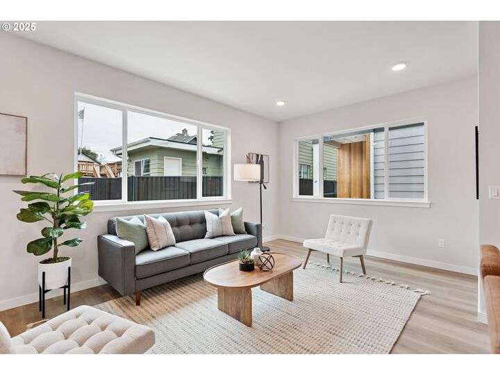 Welcome to an exceptional brand-new home thoughtfully designed, where modern sophistication meets neighborhood charm. The beautifully crafted home features three spacious bedrooms and 2 1/2 bathrooms, including a luxurious primary bedroom with ensuite bathroom on the upper level. The expansive open-concept main floor maximizes space and light, while the gourmet kitchen showcases premium quartz countertops and stainless-steel appliances. Enjoy morning coffee on the covered front porch with warm southern exposure. Step out to the commons area turf to enjoy a perfect outdoor area for yard games, entertaining, and year-round enjoyment. Nestled on a peaceful street near historic Woodstock, you'll enjoy the perfect blend of tranquil living with urban accessibility - just moments from local shops, cafes, parks, and schools. Located just blocks from the newly renovated and beautifully designed Mt. Scott Community Center, residents have easy access to exceptional recreation amenities. For availability, pricing, plans and more info visit the Rose City Commons PDX website. [Home Energy Score = 9. HES Report at https://rpt.greenbuildingregistry.com/hes/OR10241878]